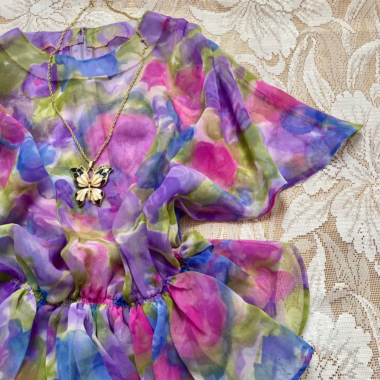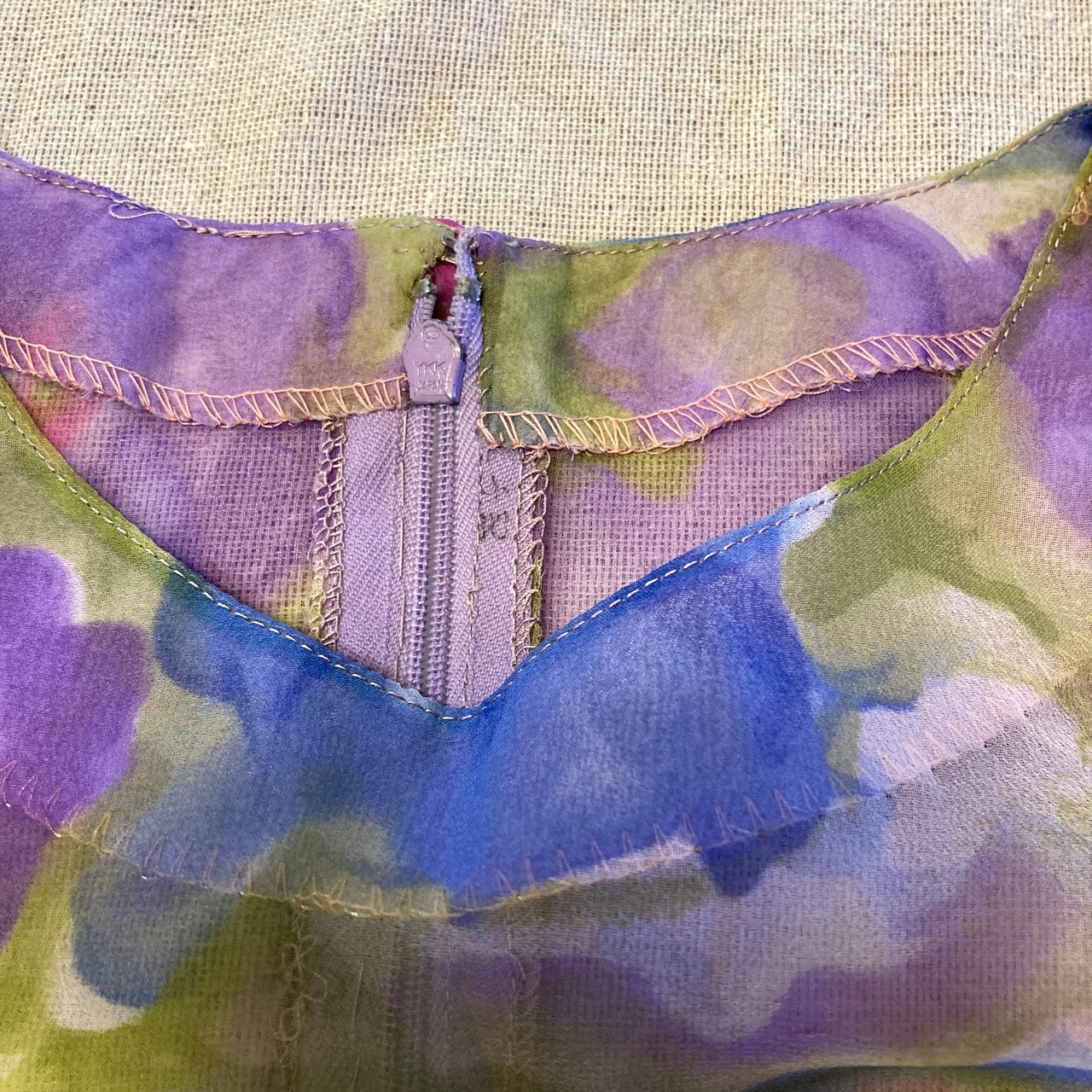 水彩画花模様デザインシアートップス 古着 used vintage レトロ