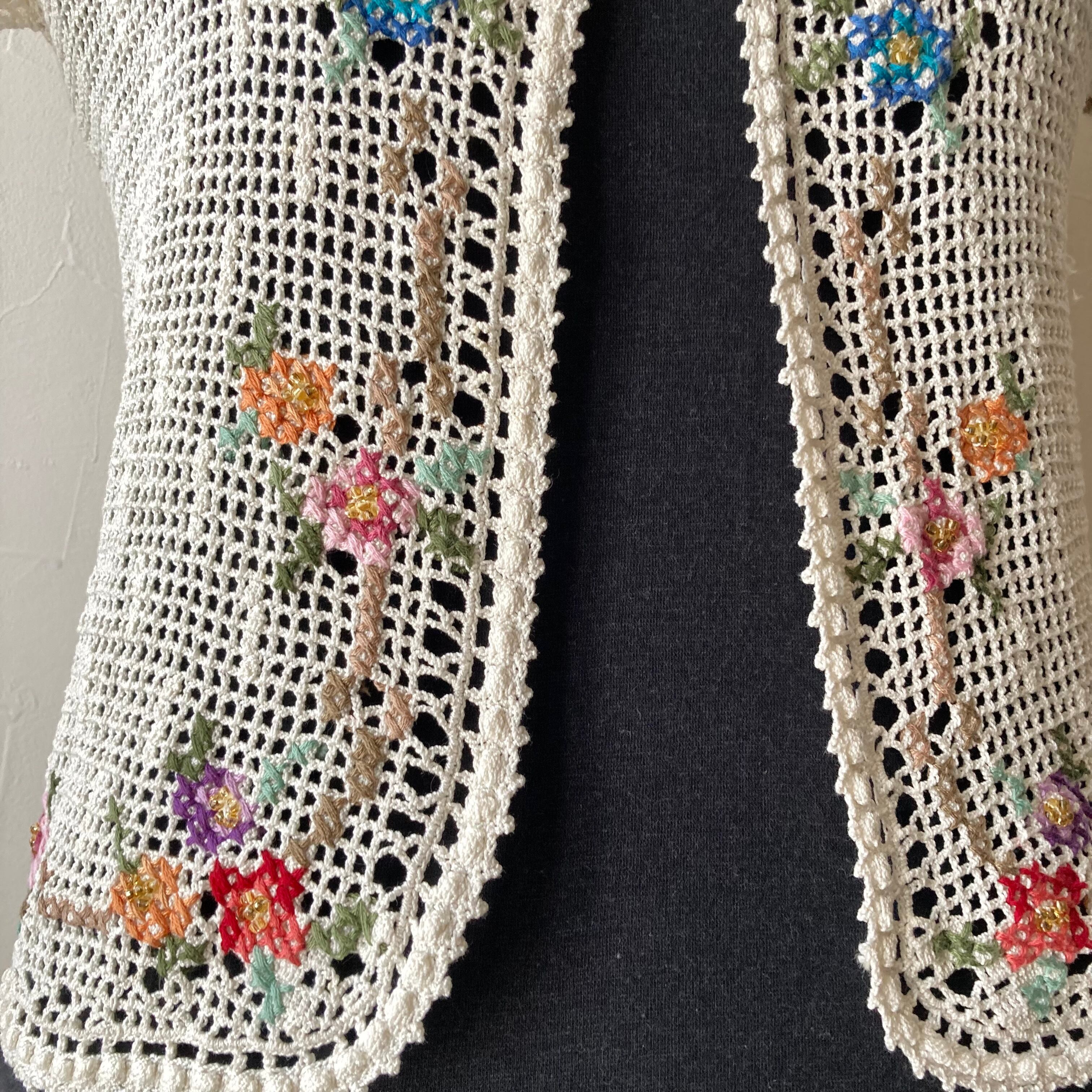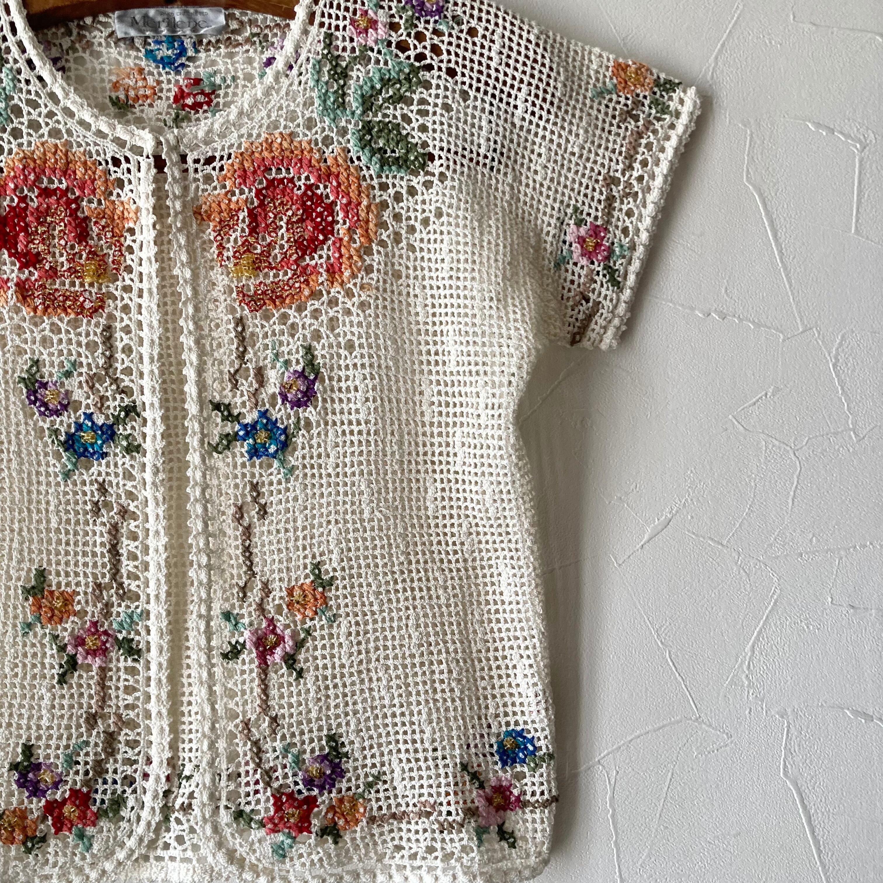 コットン刺繍半袖カーディガン 古着 used vintage レトロ