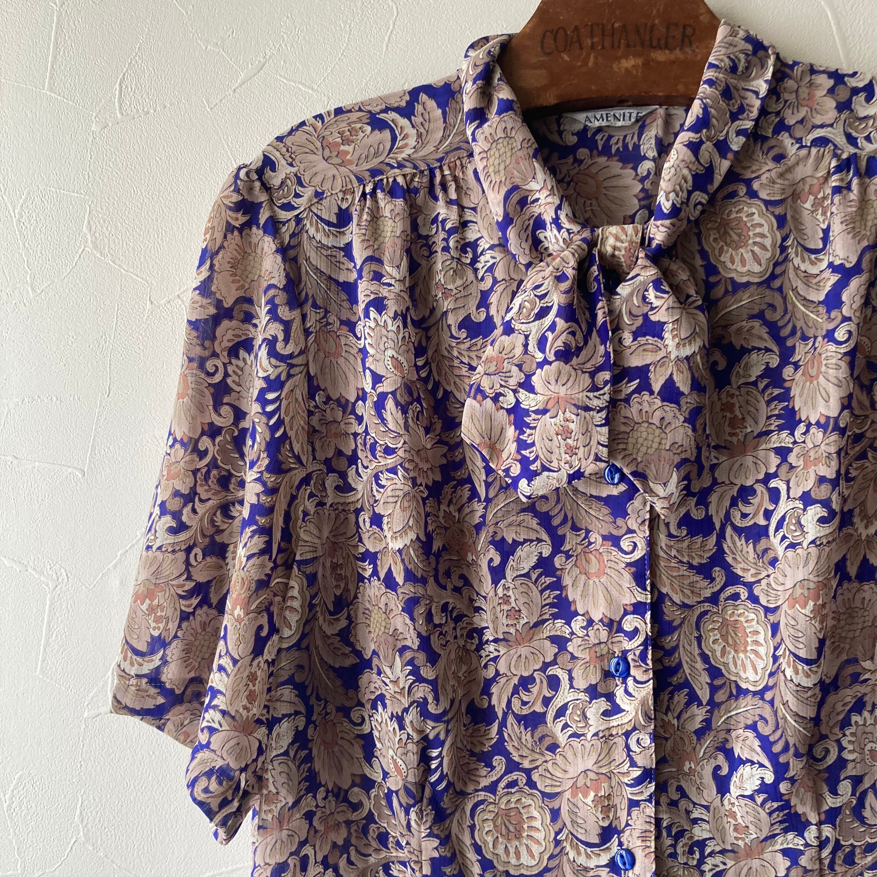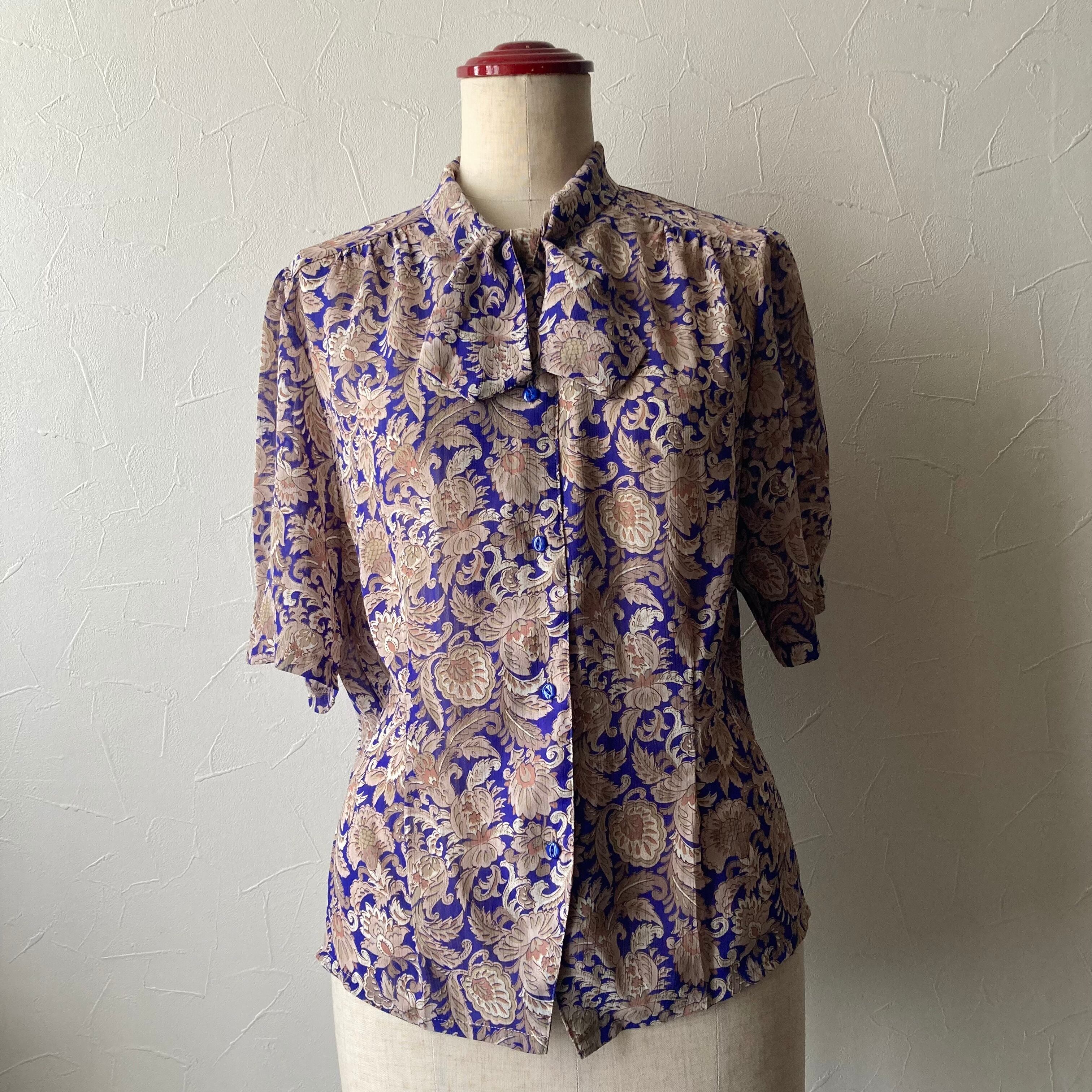 ボタニカル柄リボンブラウス 古着 used vintage レトロ