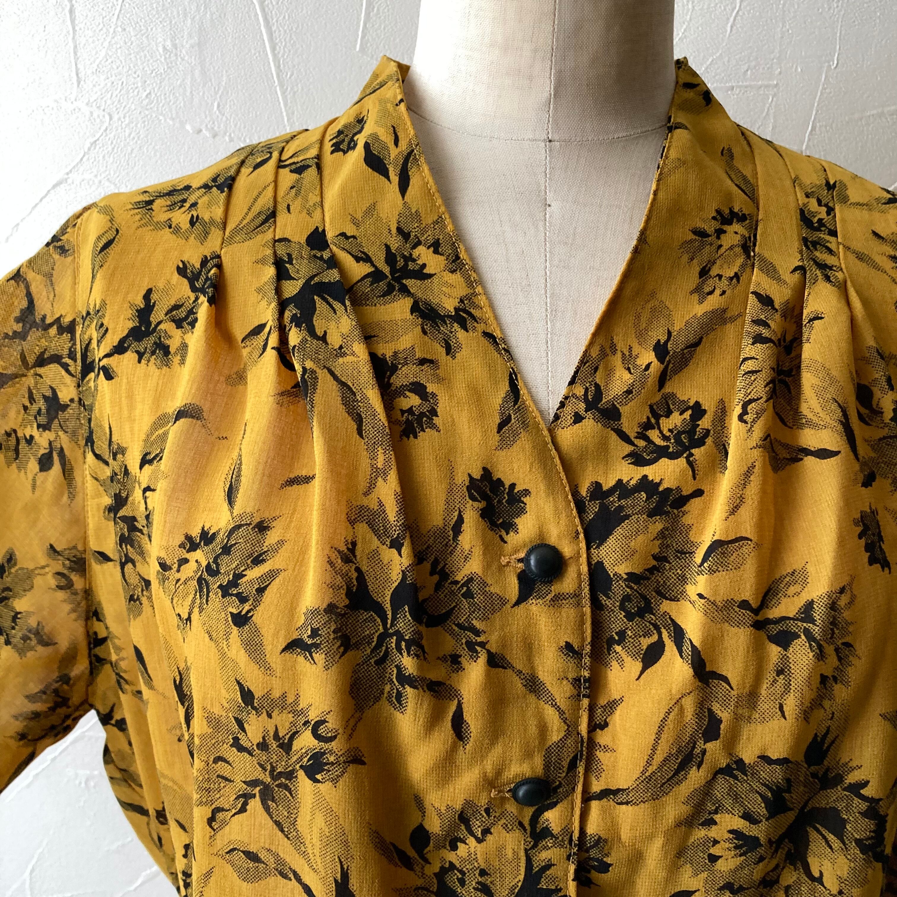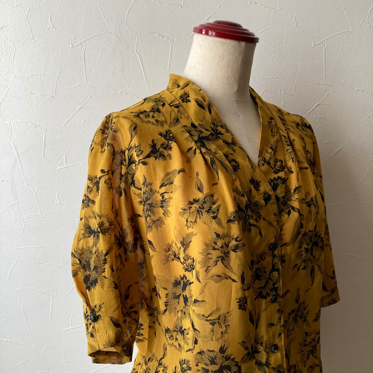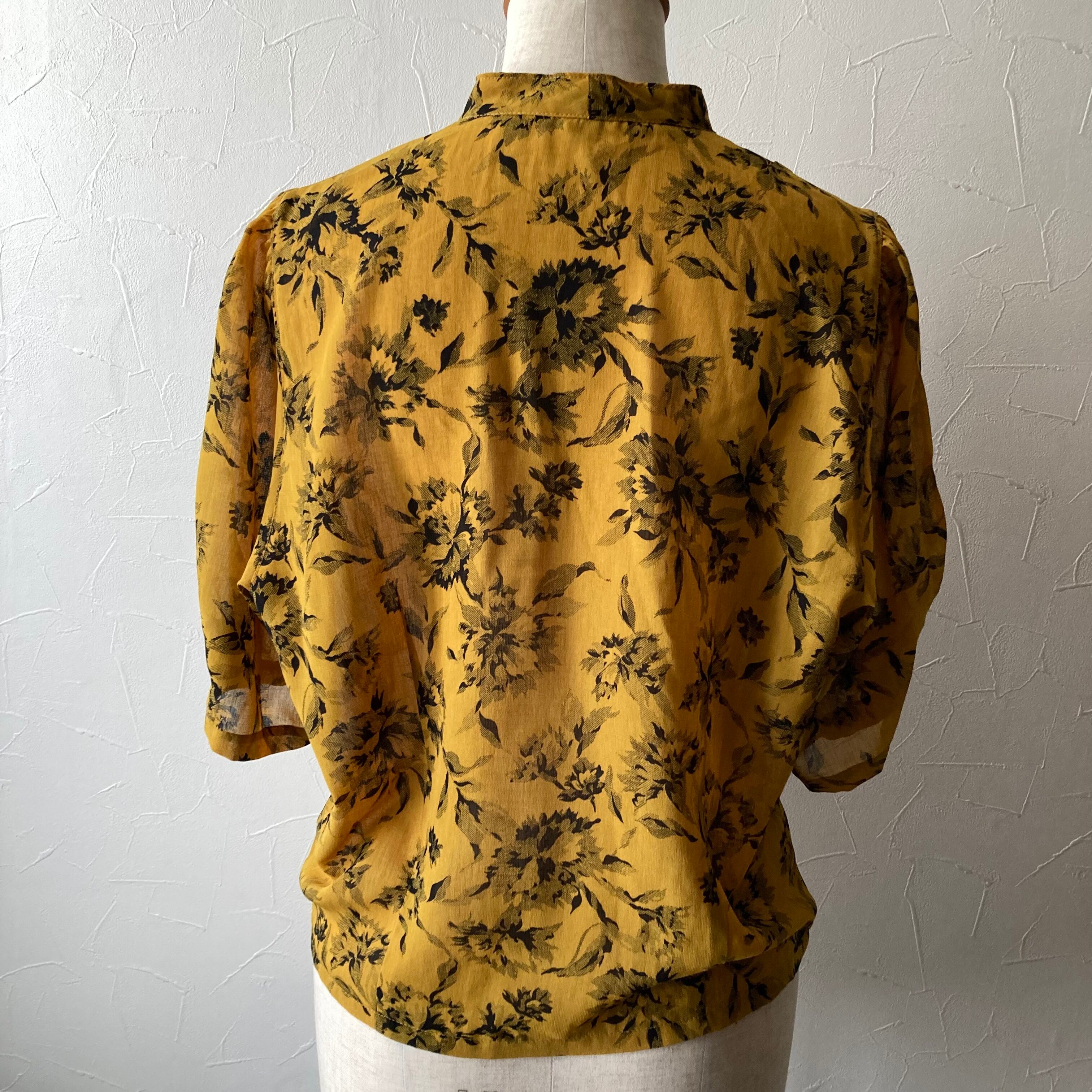 花模様ノーカラーブラウス 古着 used vintage レトロ