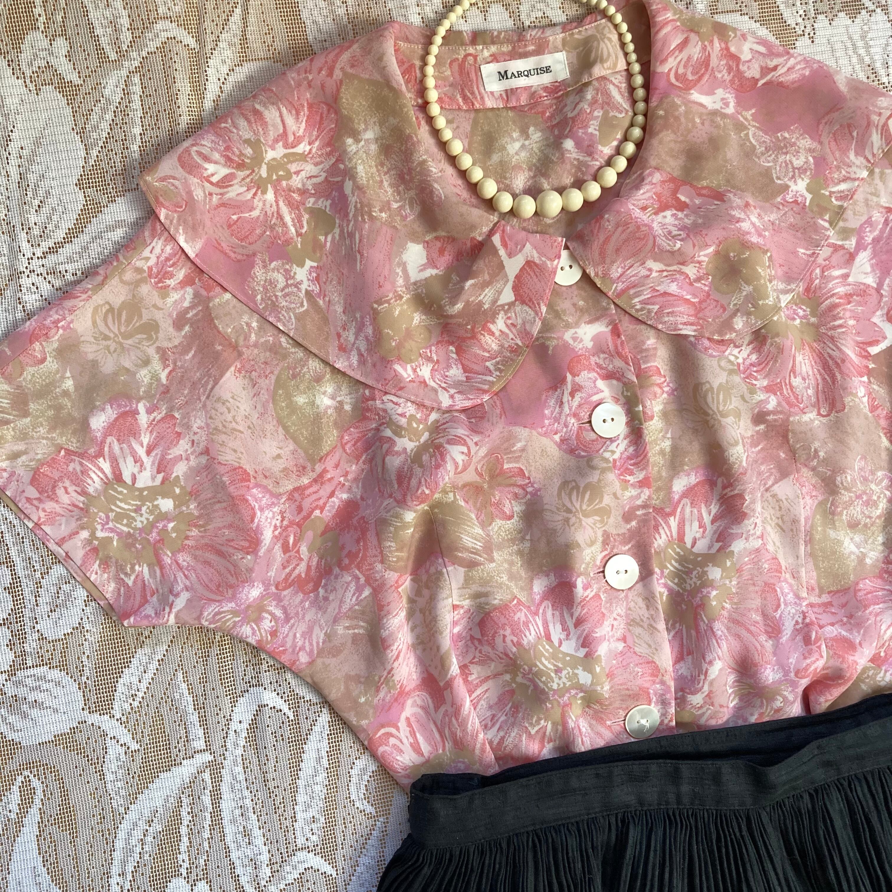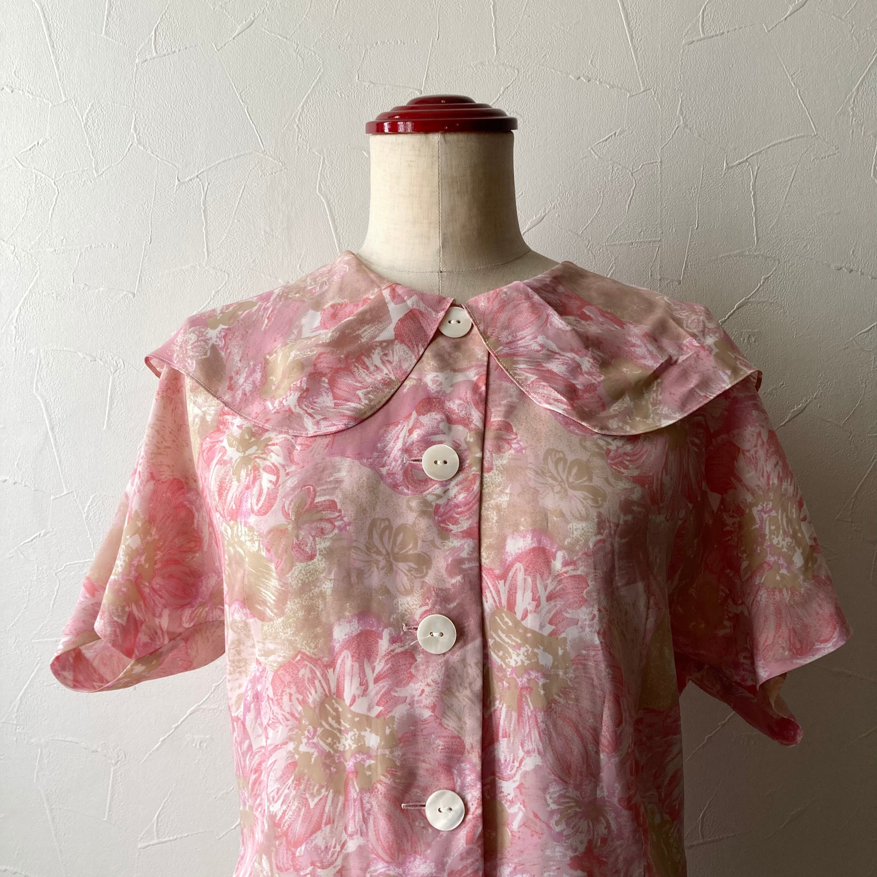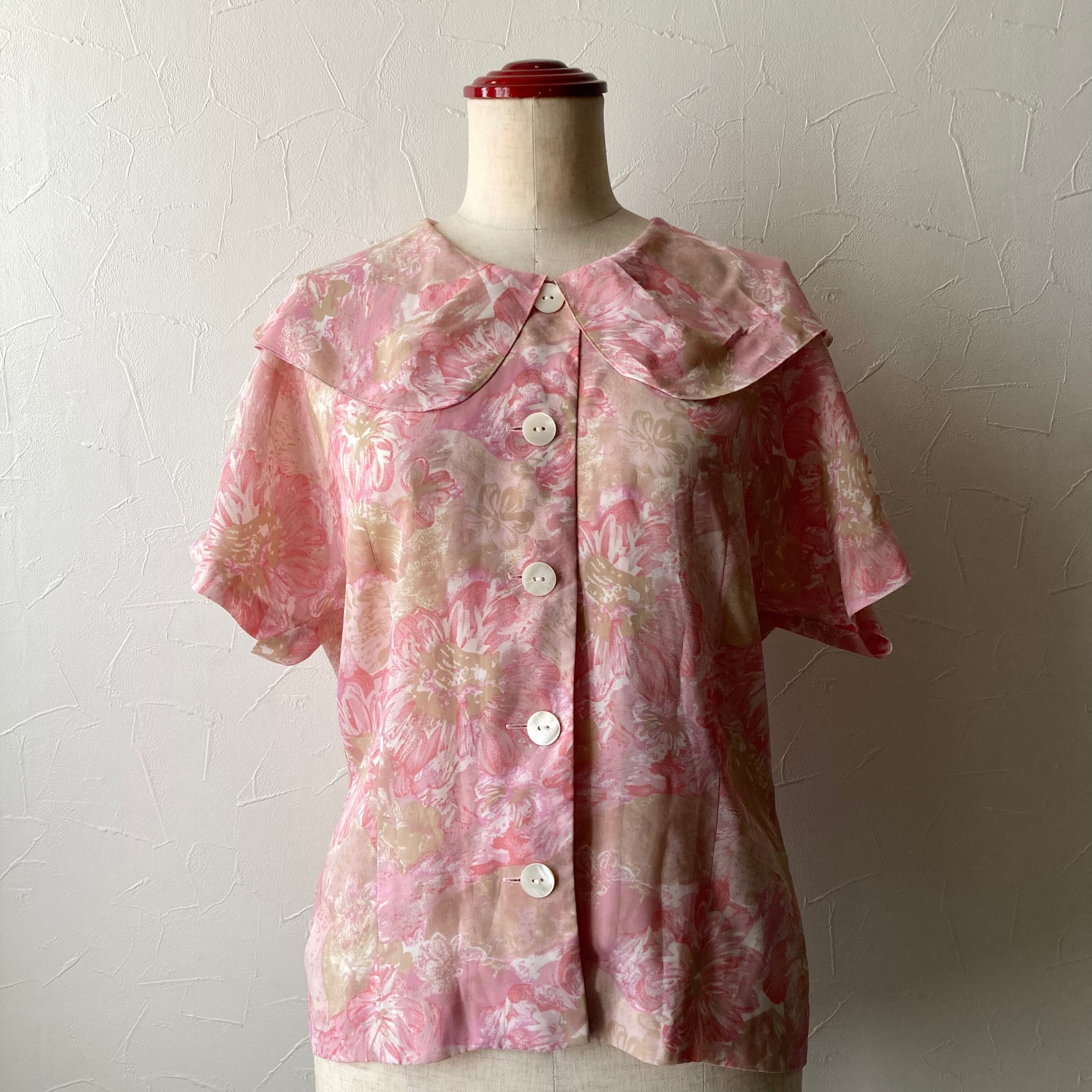 花模様ビッグカラーブラウス 古着 used vintage レトロ