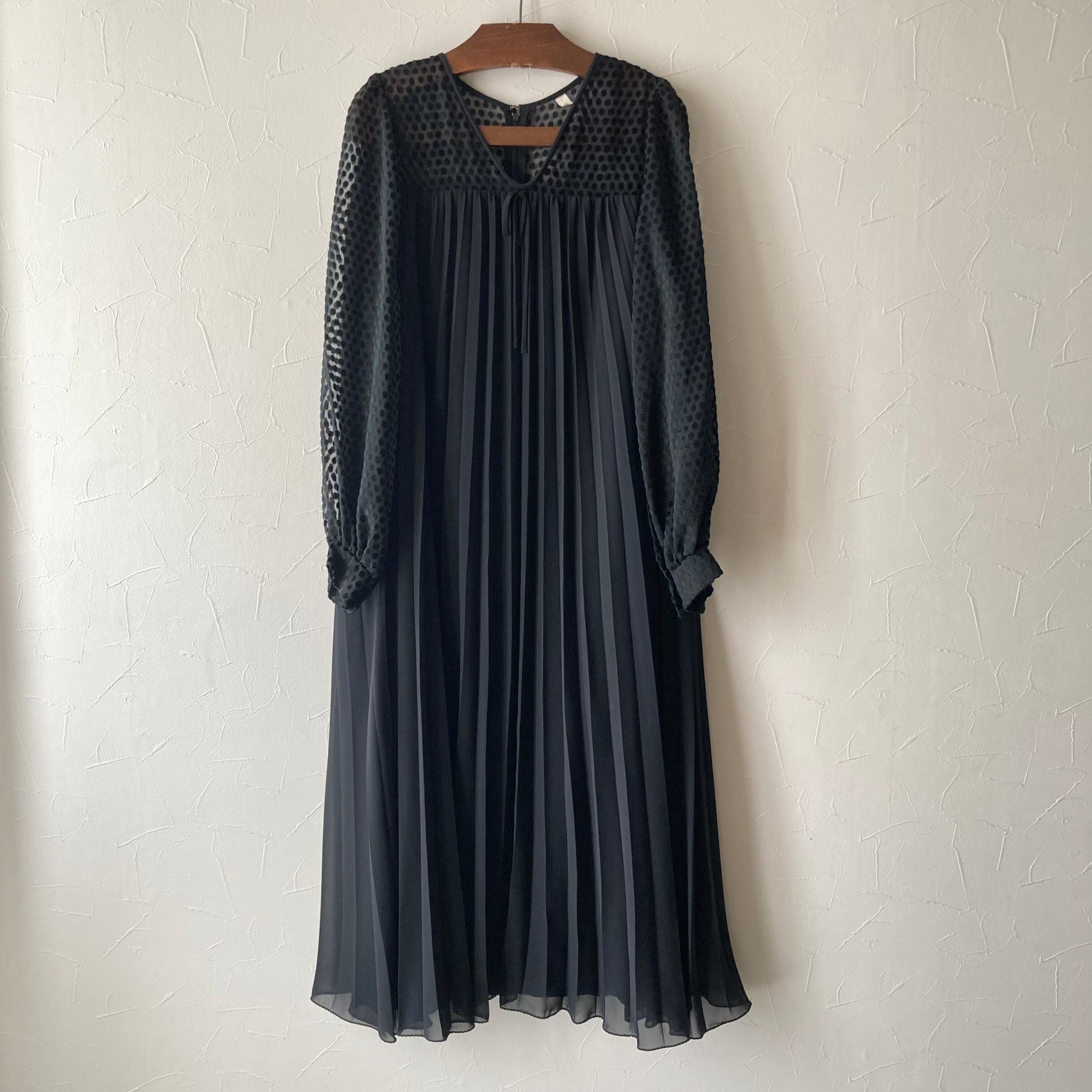 ドットシアープリーツワンピース 古着 used vintage レトロ