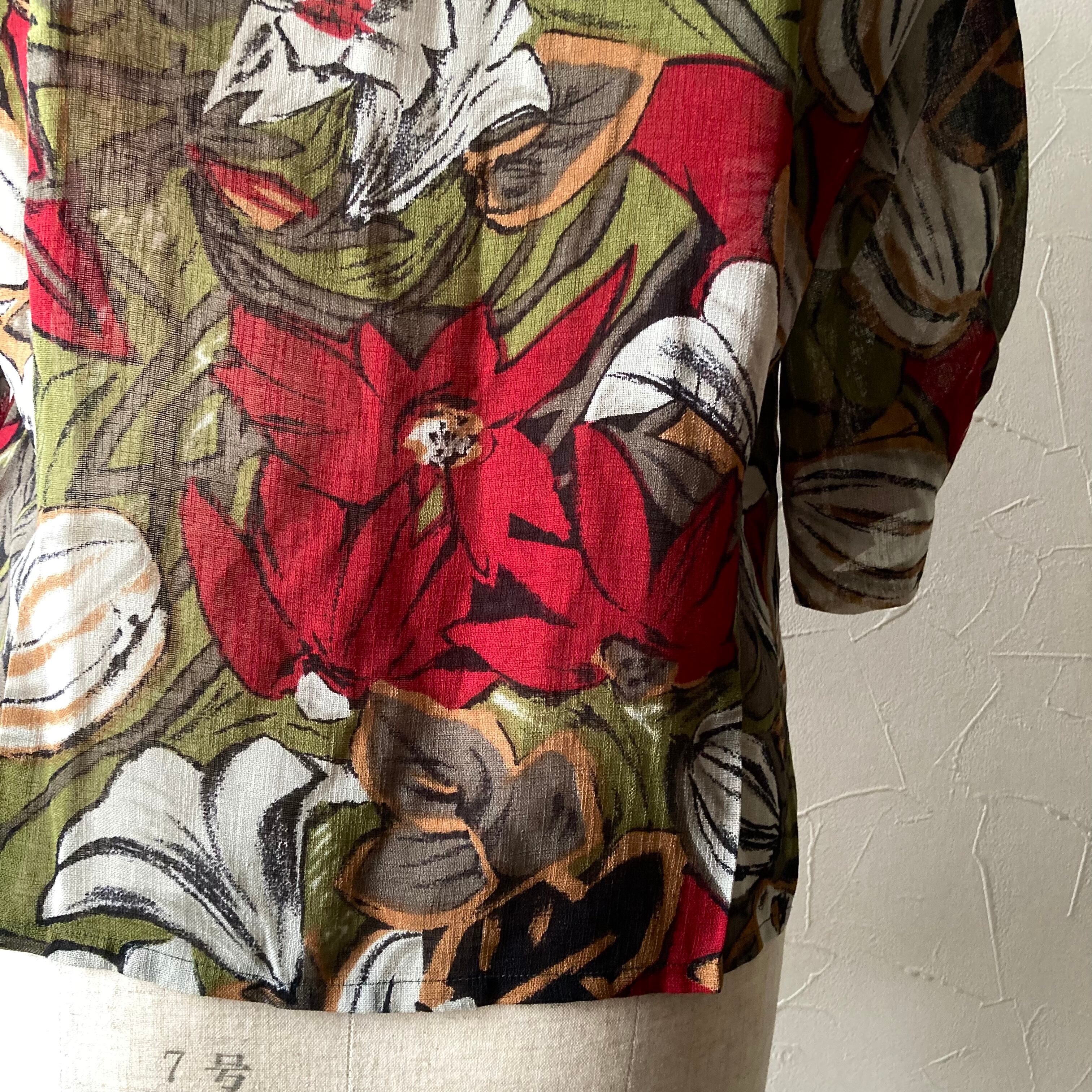 ボタニカルリボン風ブラウス 古着 used vintage レトロ