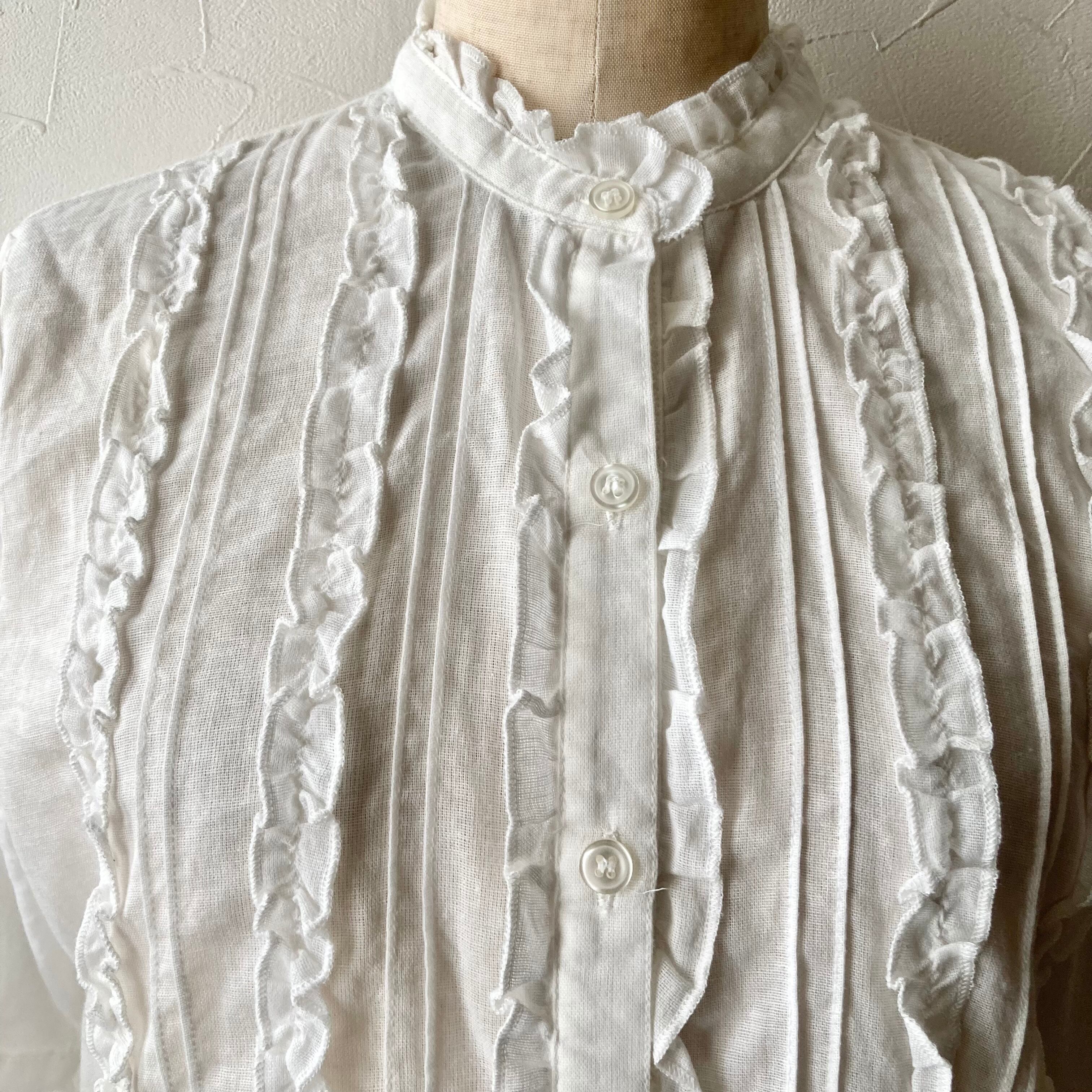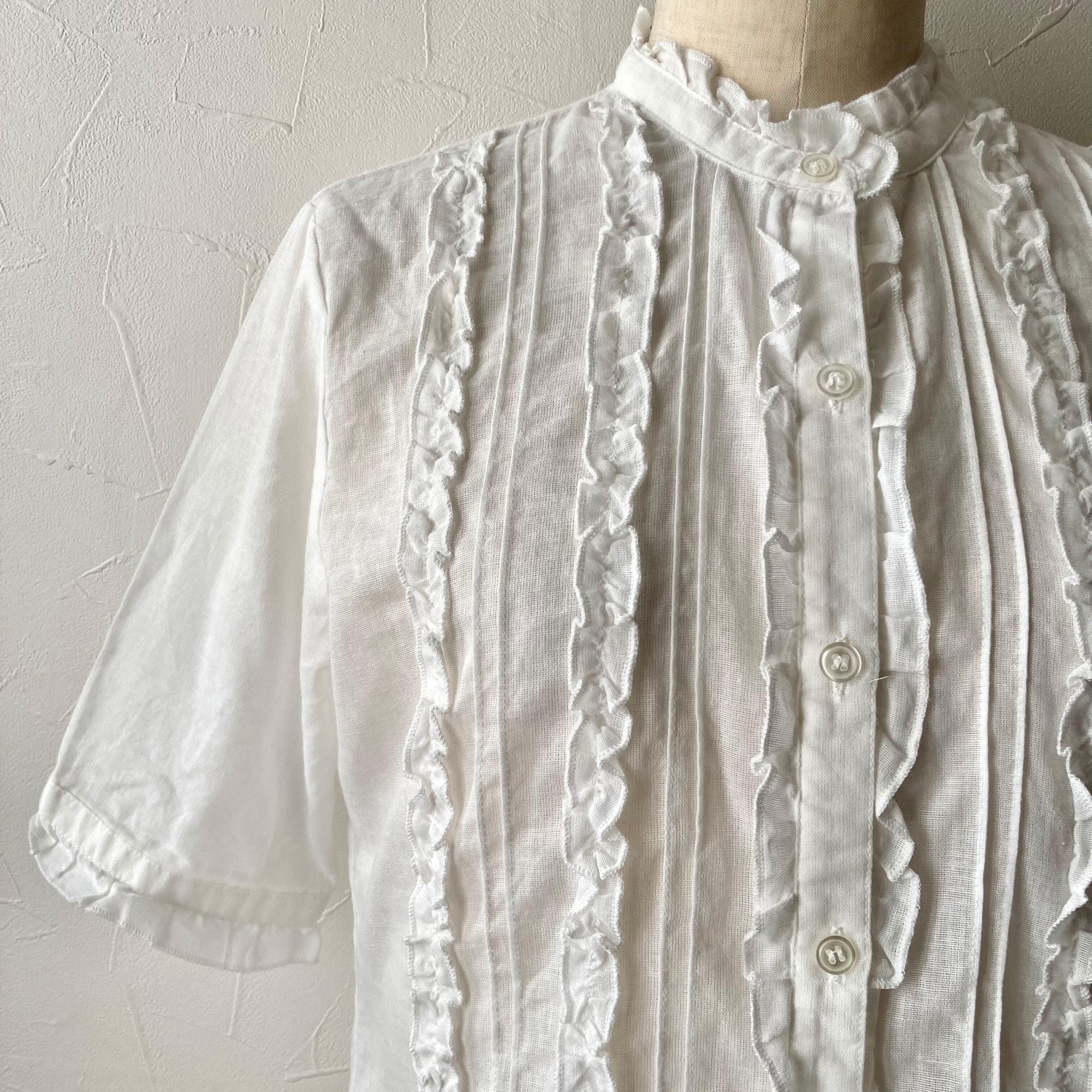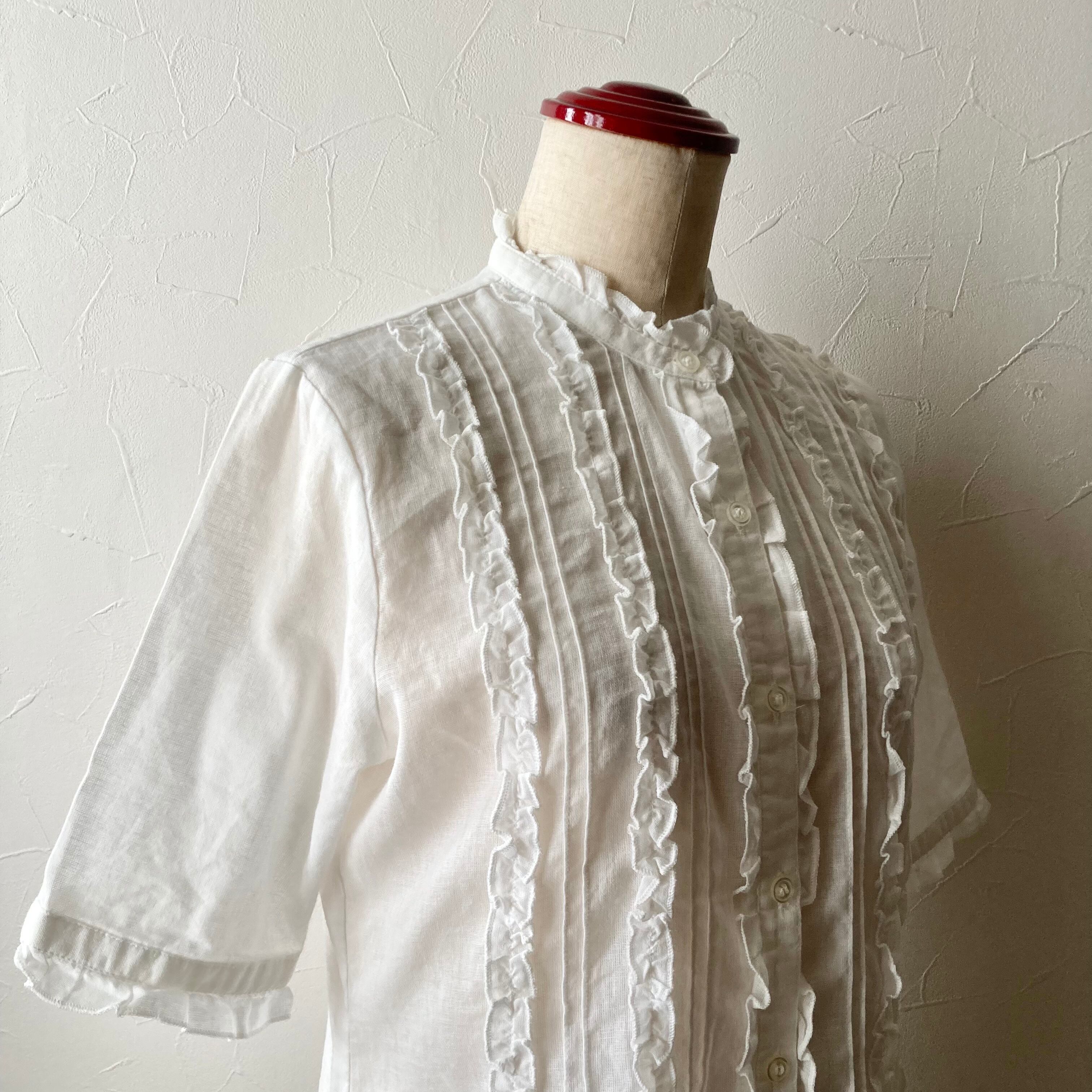 フリルが施されたガーゼ素材の肌触りのよいブラウス◯ きちんとした雰囲気もあって色々なシーンで着やすい一枚だと思います。