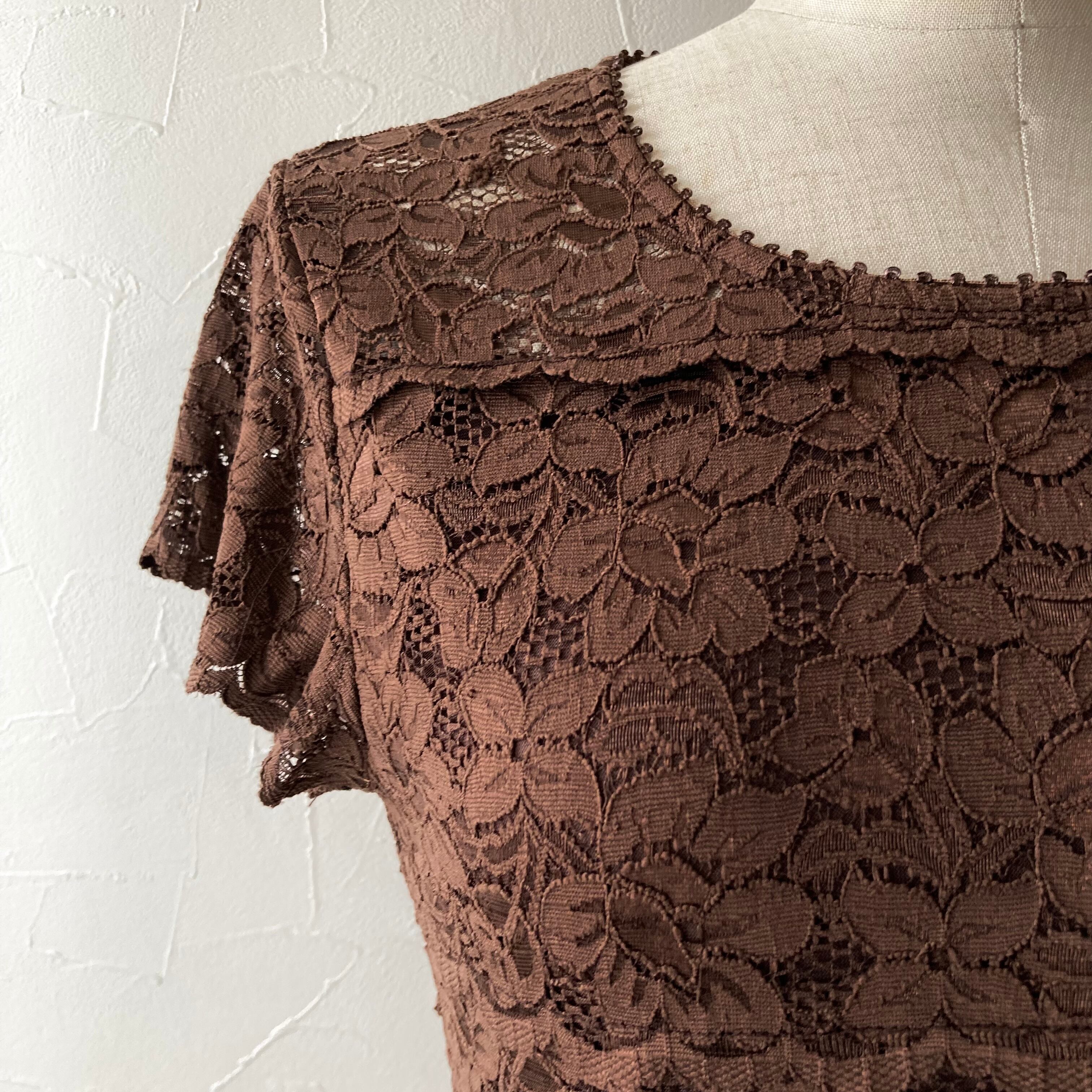 花レースとブラウンカラーの組み合わせが可愛いトップス◯ インナーとしてもトップスとしても、ステキな一枚です。