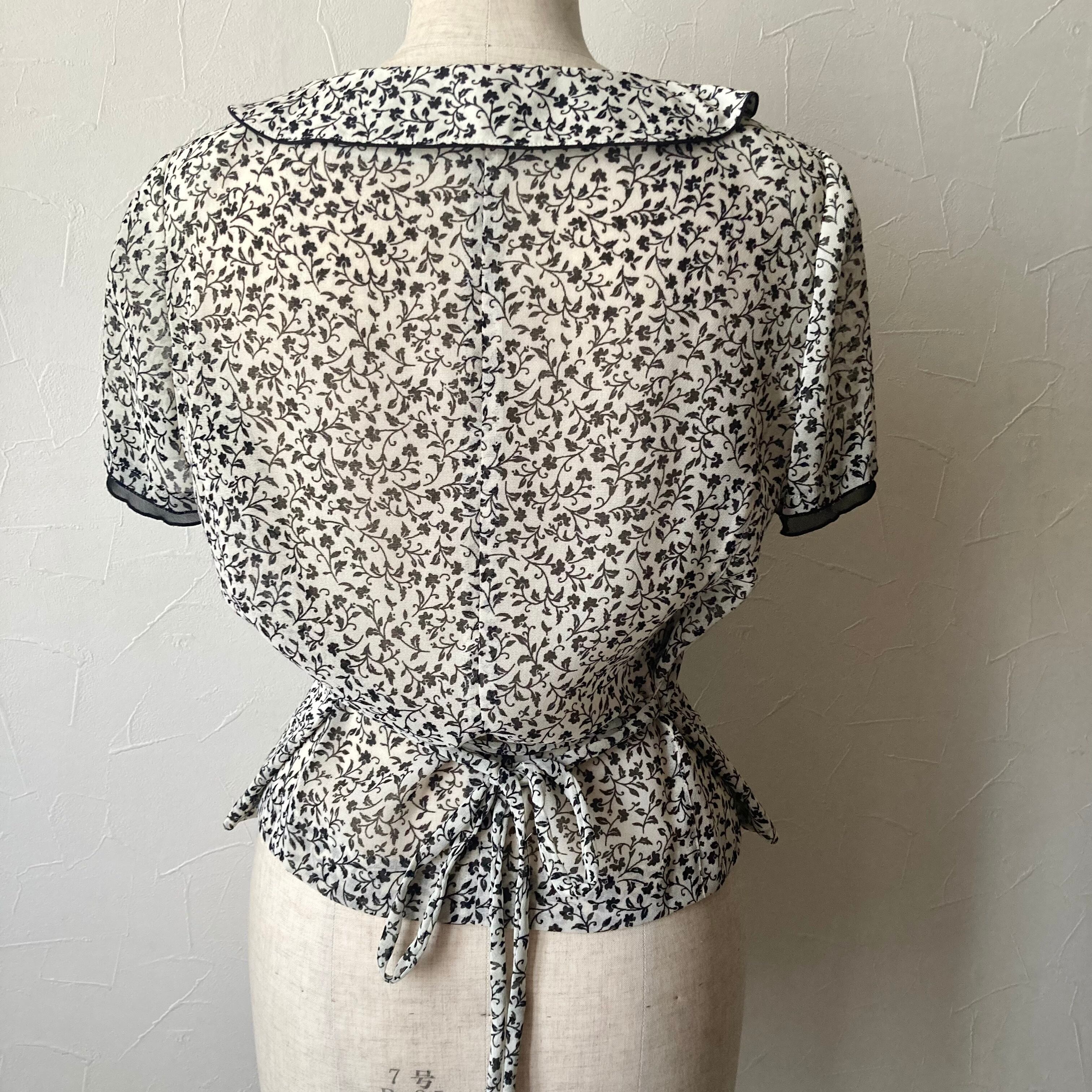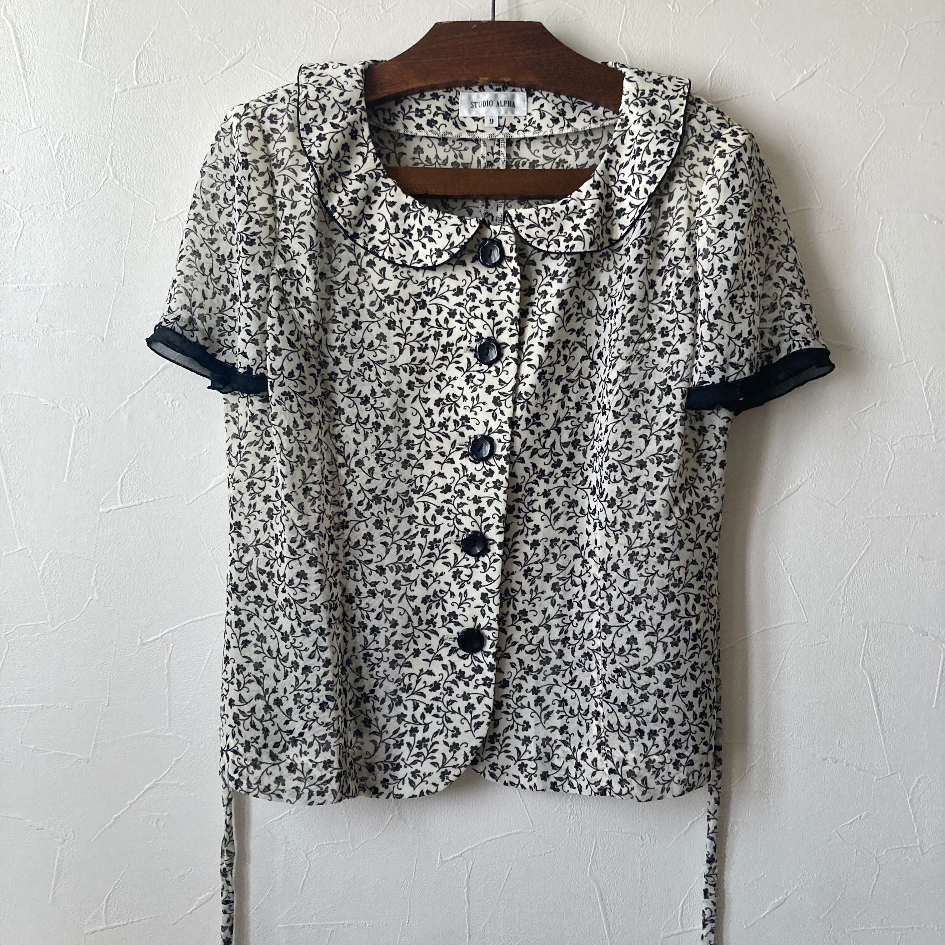 モノトーンボタニカル柄ブラウス 古着 used vintage