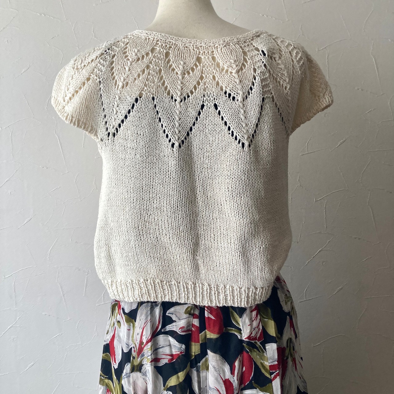 ホワイトサマーニットトップス 古着 used vintage レトロ