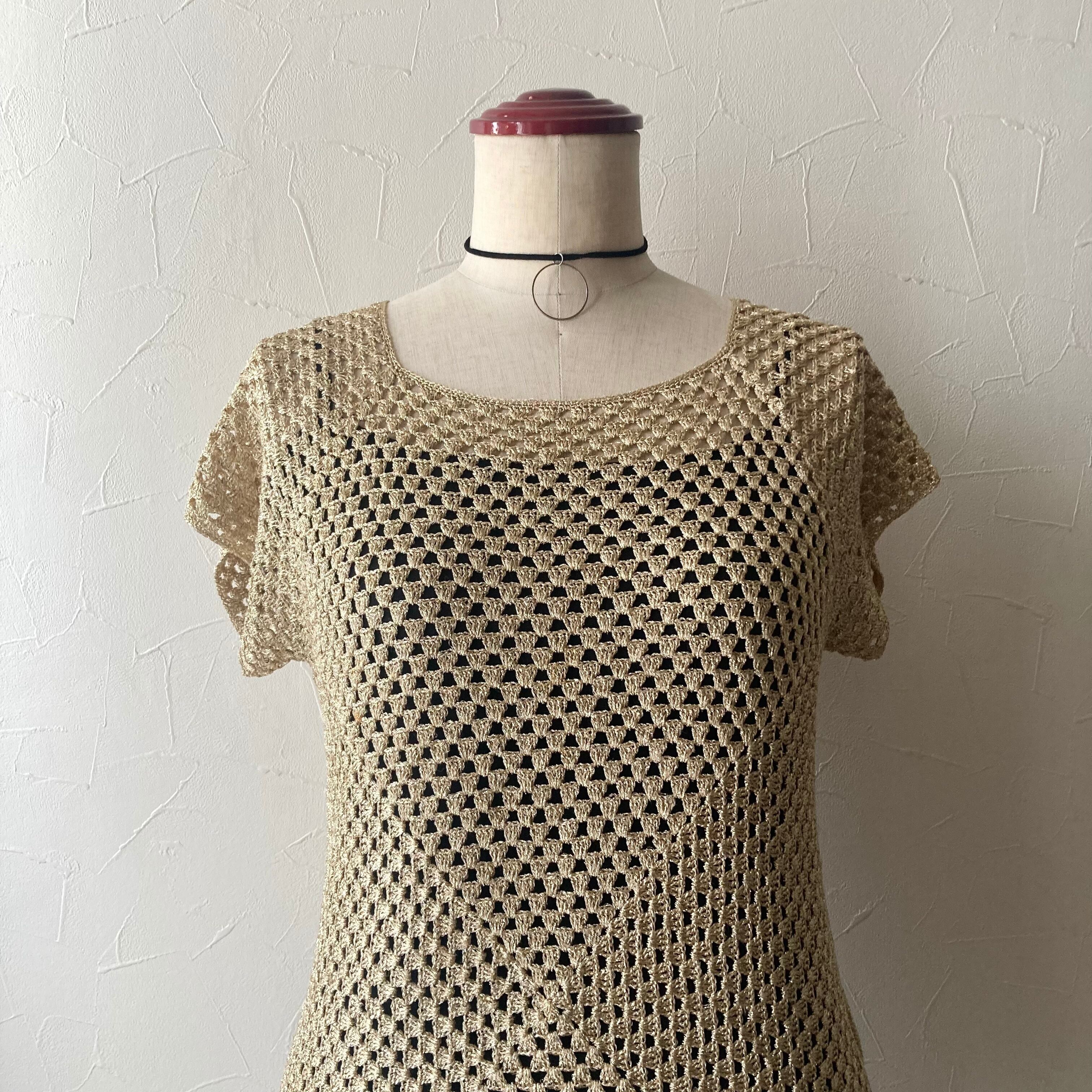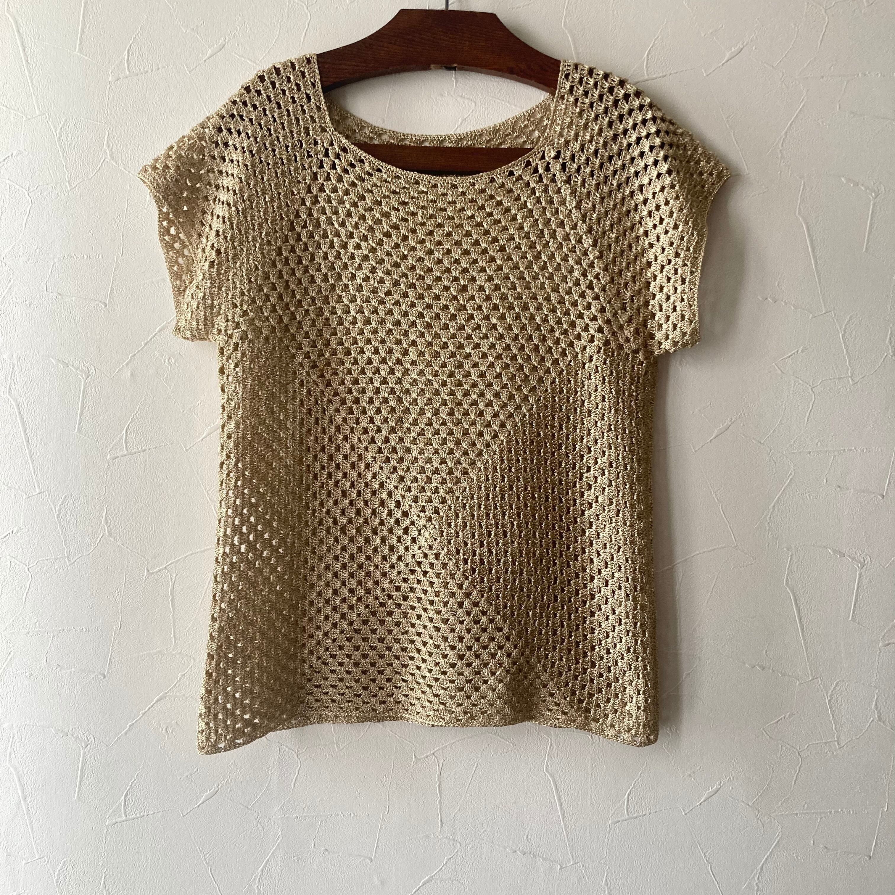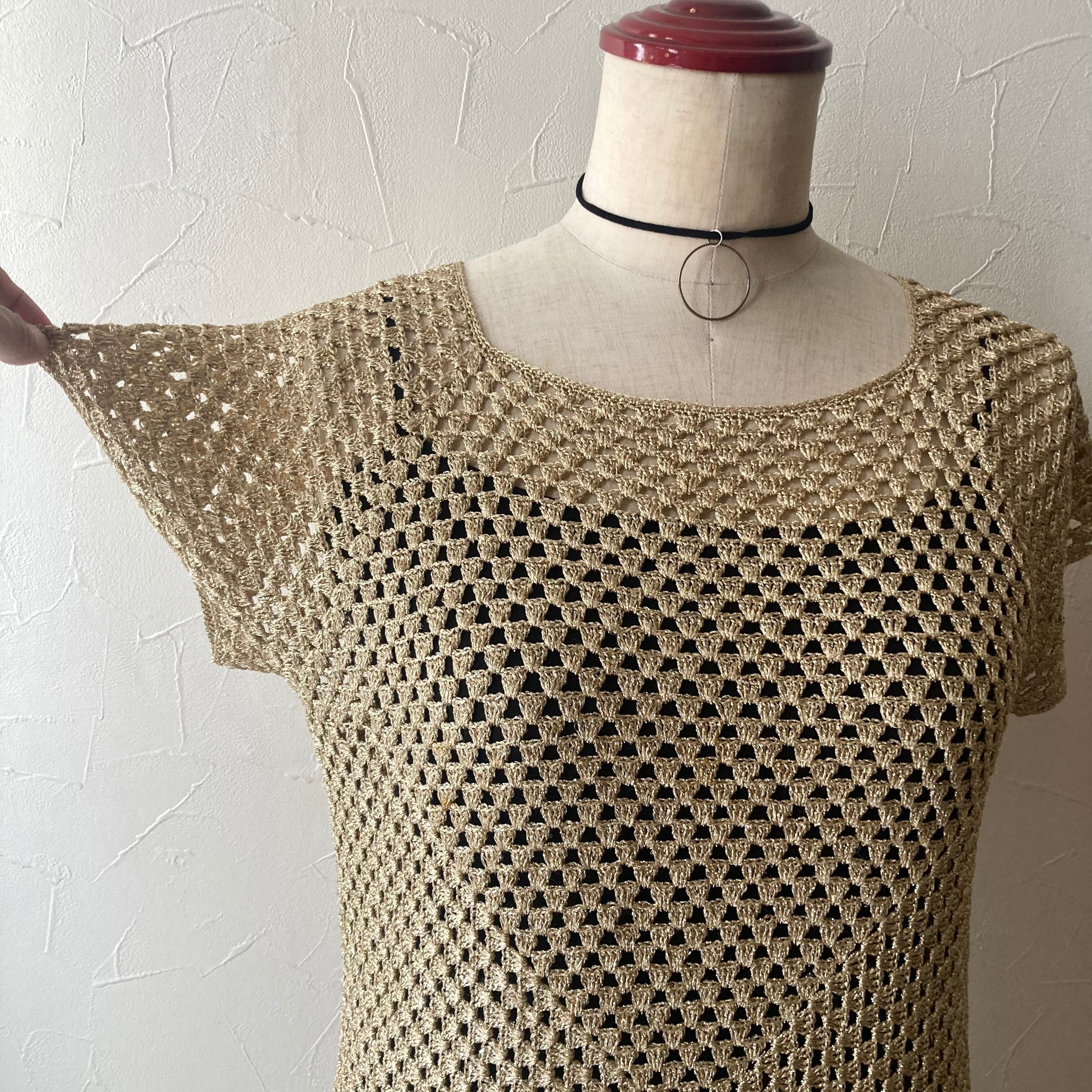 ゴールドラメサマーニットトップス 古着 used vintage レトロ