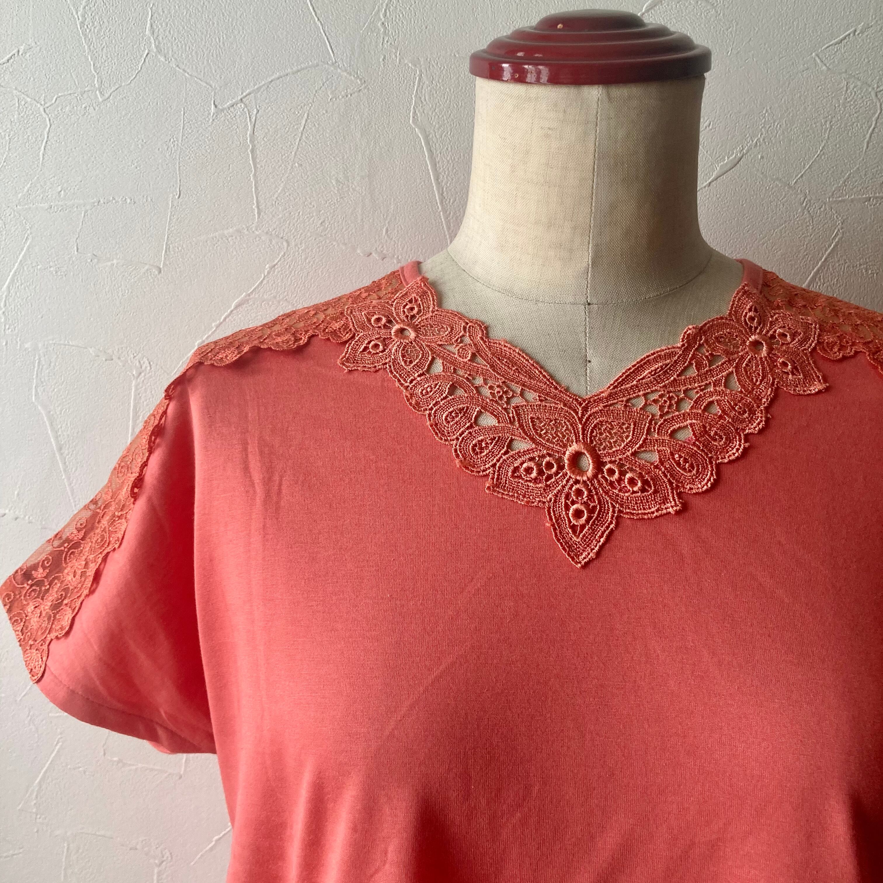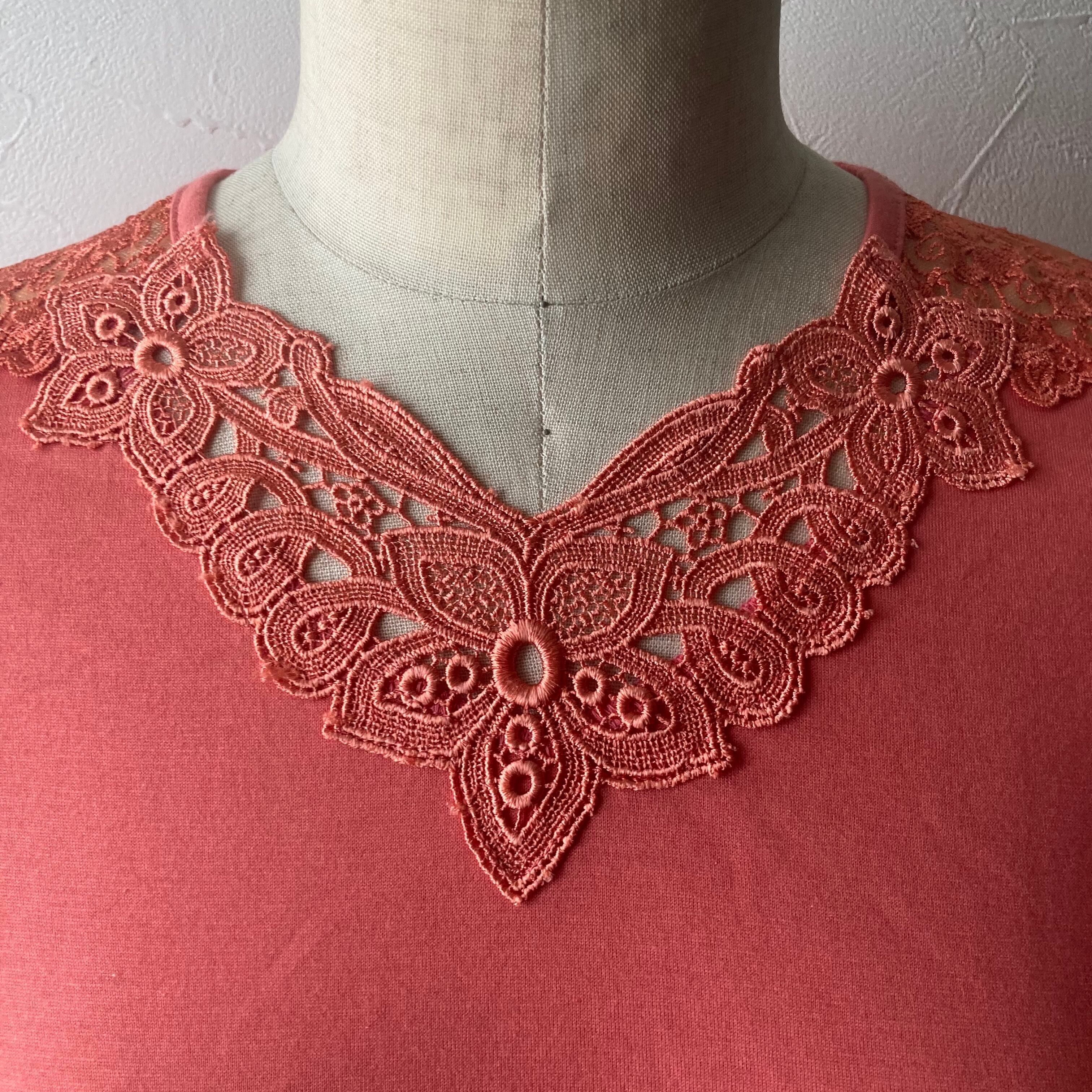 コットンの透け感のあるレース刺繍が素敵なデザインのレナウン製トップス◯ フレンチスリーブで形もきれいです。