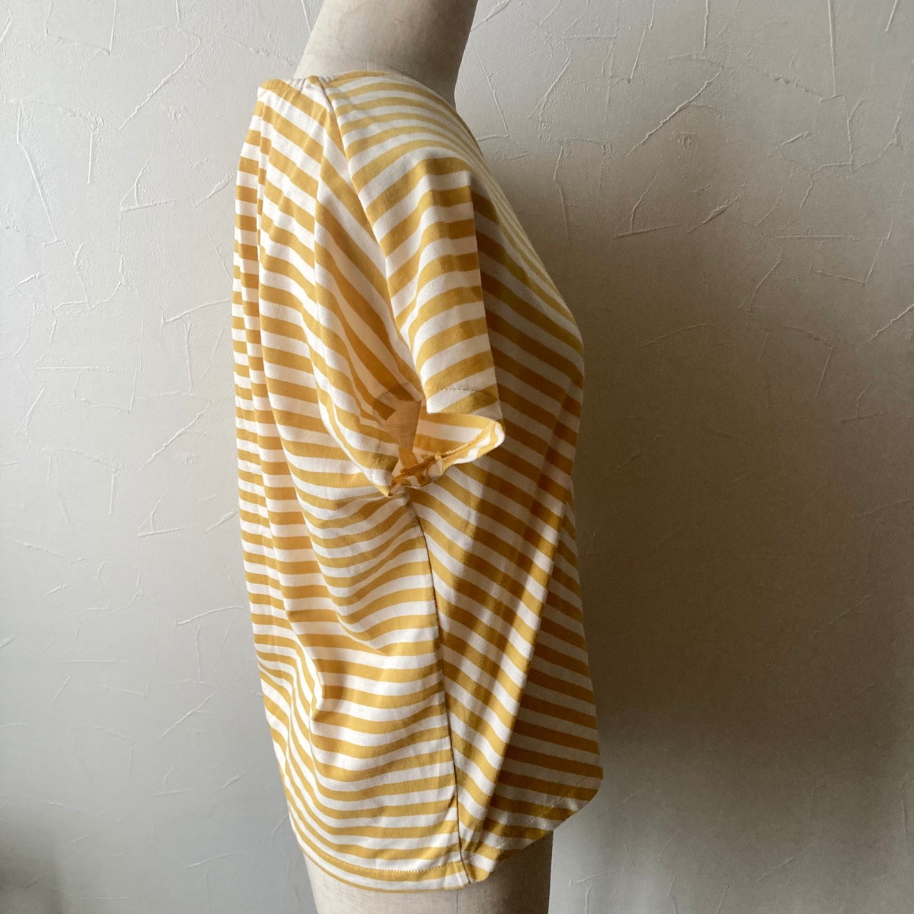イエローのラインの入ったシルエットがきれいなトップス◯ 古着らしいデザインで可愛いです。