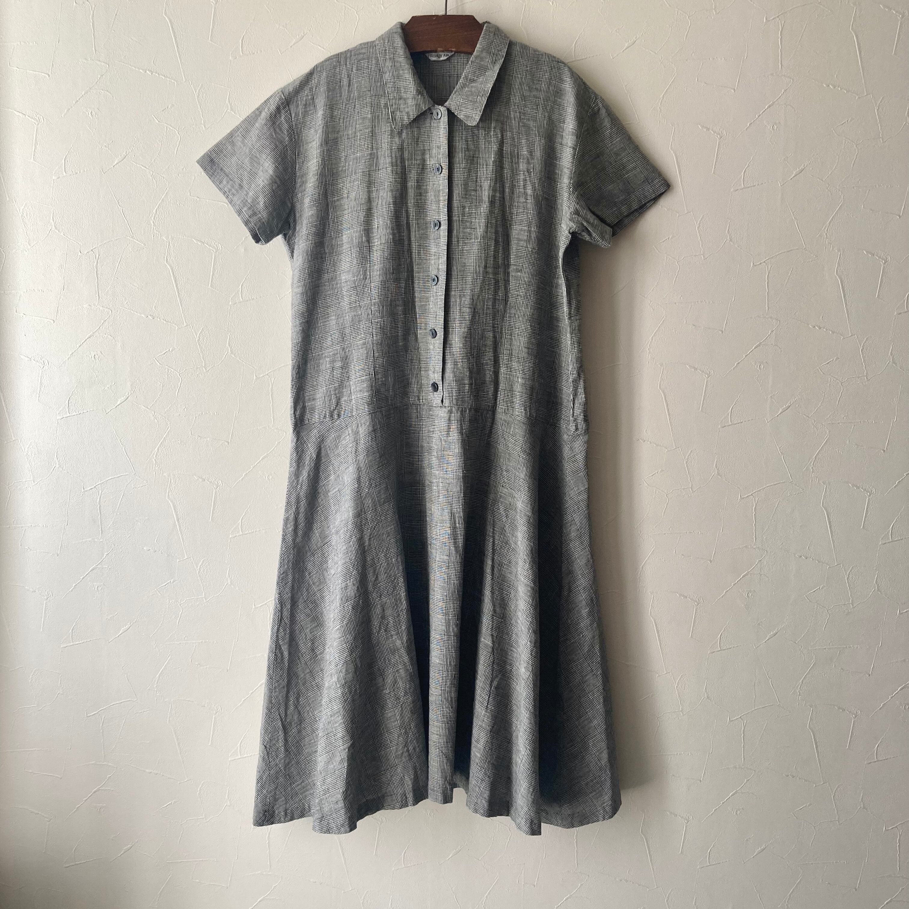 グレンチェックのシンプルなワンピース◯ 切り替えでフレアスカートになったデザインでシンプルの中にも可愛らしさも感じられます。膝が隠れる丈感で、ごつめの靴やハイカットスニーカーなどとの相性が良さそうです。品質タグがありませんが、触り心地はコットンかと思います。裏地はなく涼しく着ていただけます。
