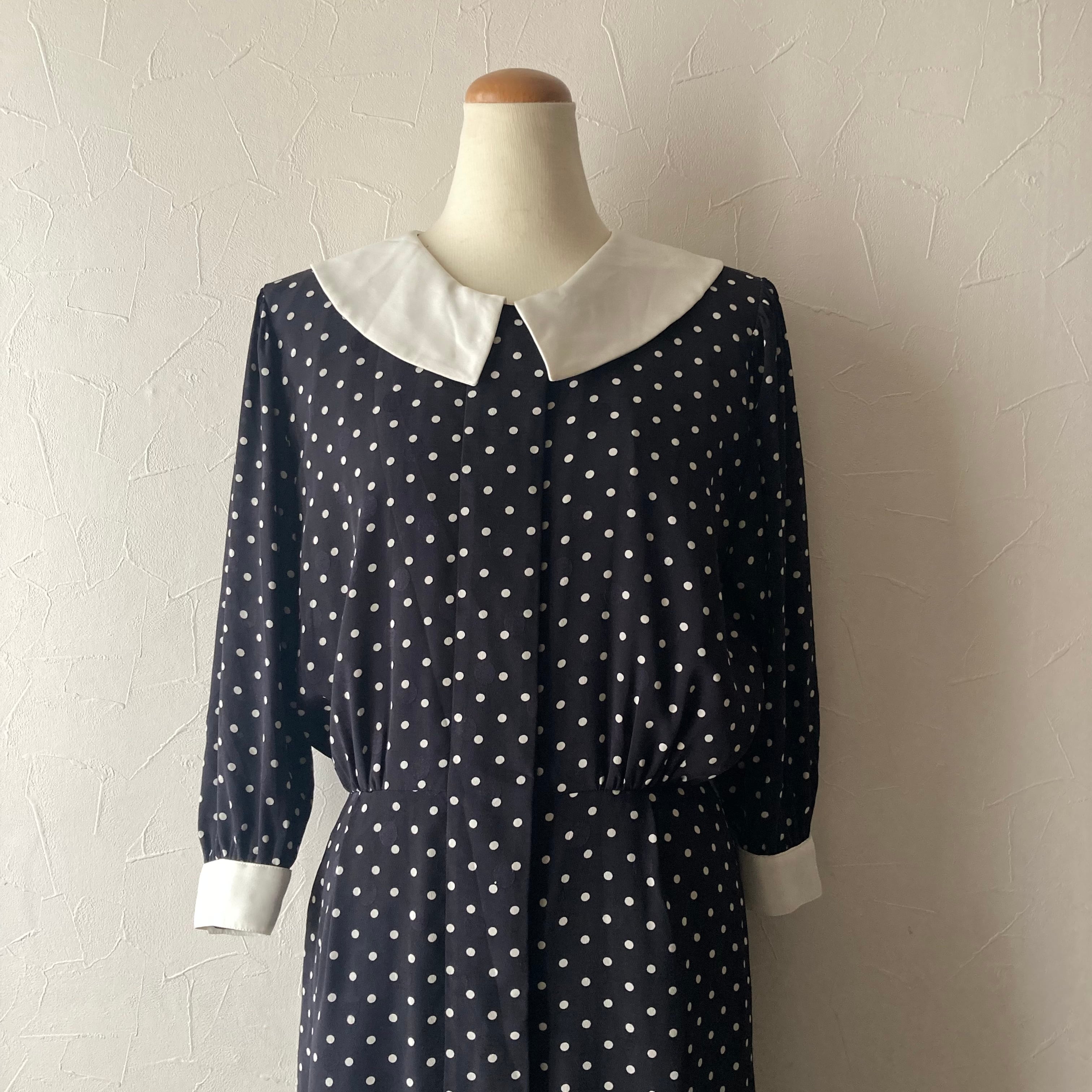 ホワイト襟ドットワンピース 古着 used vintage レトロ