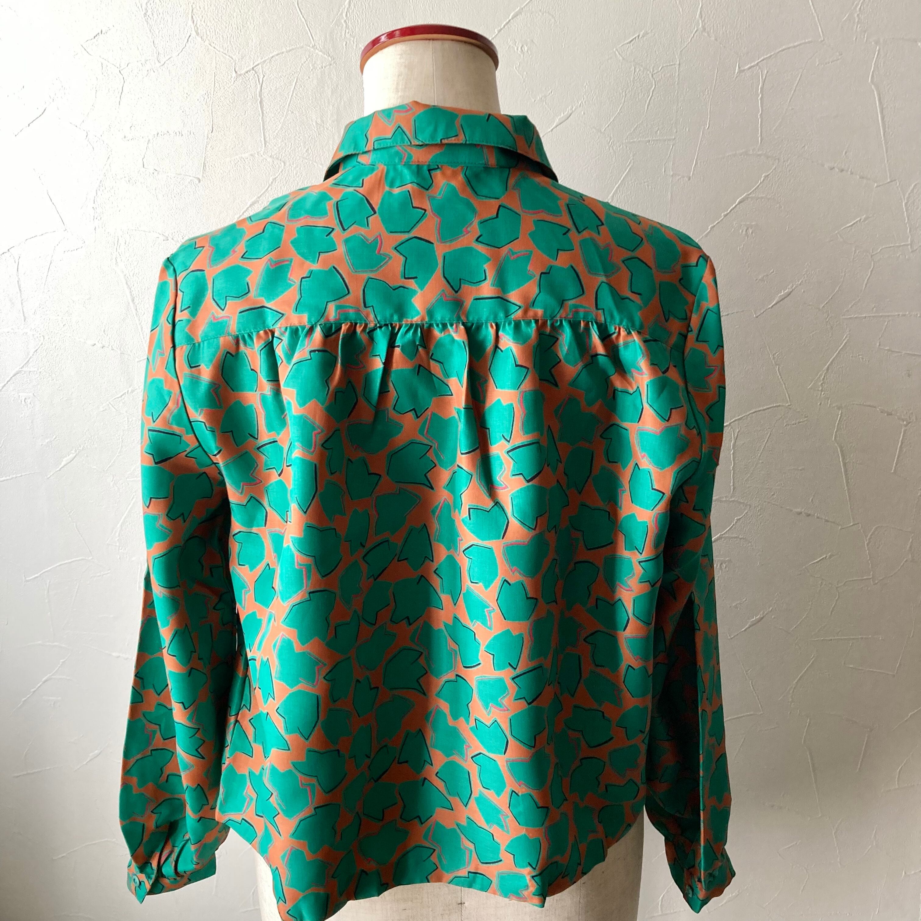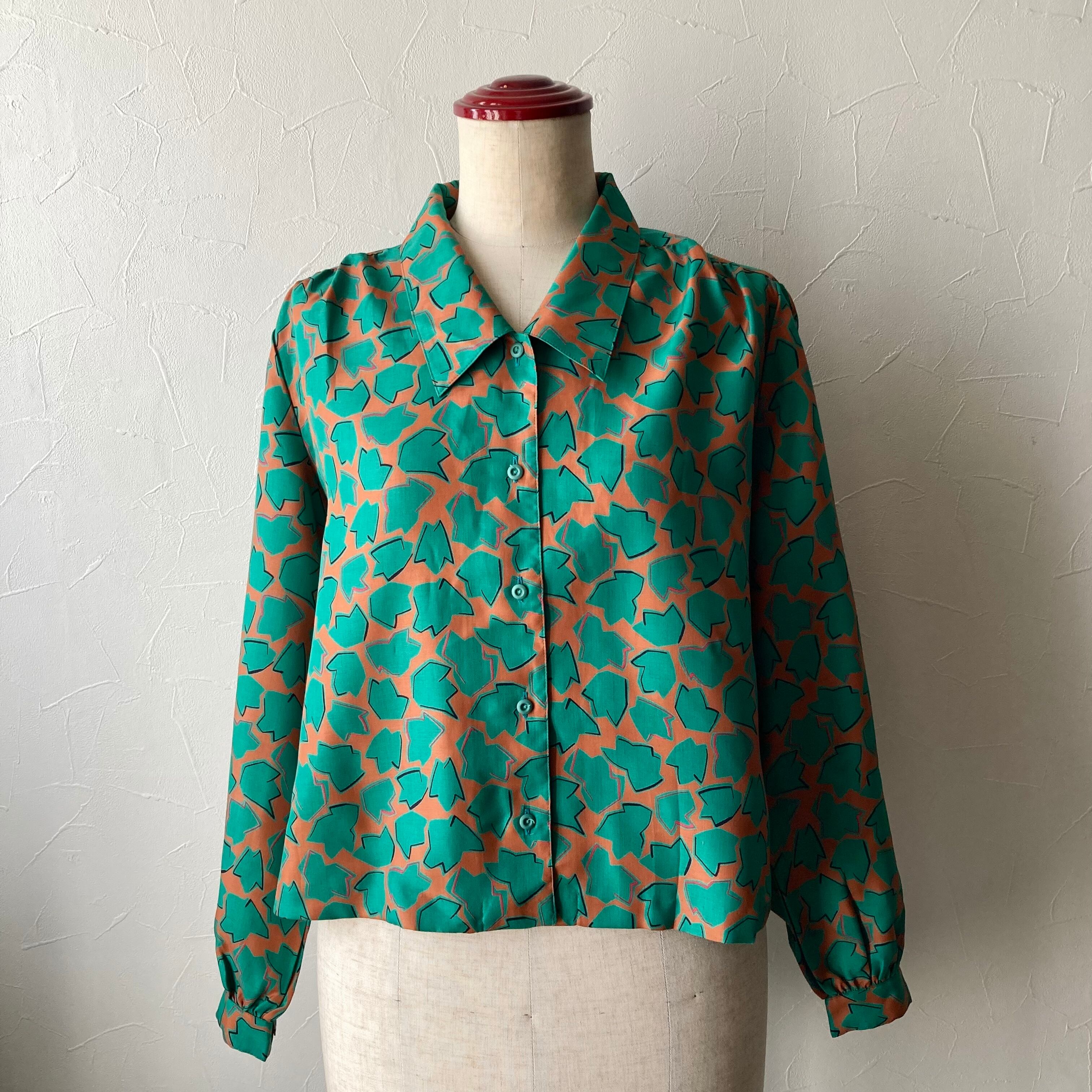 レトロな色合い、モダンでお茶目な葉っぱ柄が可愛らしい東京ブラウス製ブラウスです。