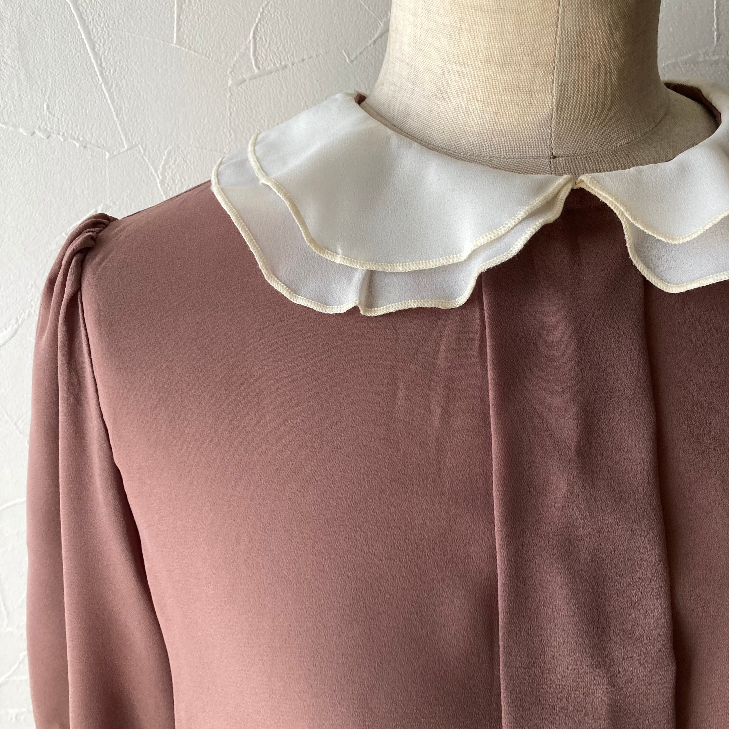 二重襟ブラウンブラウス 古着 used vintage レトロ