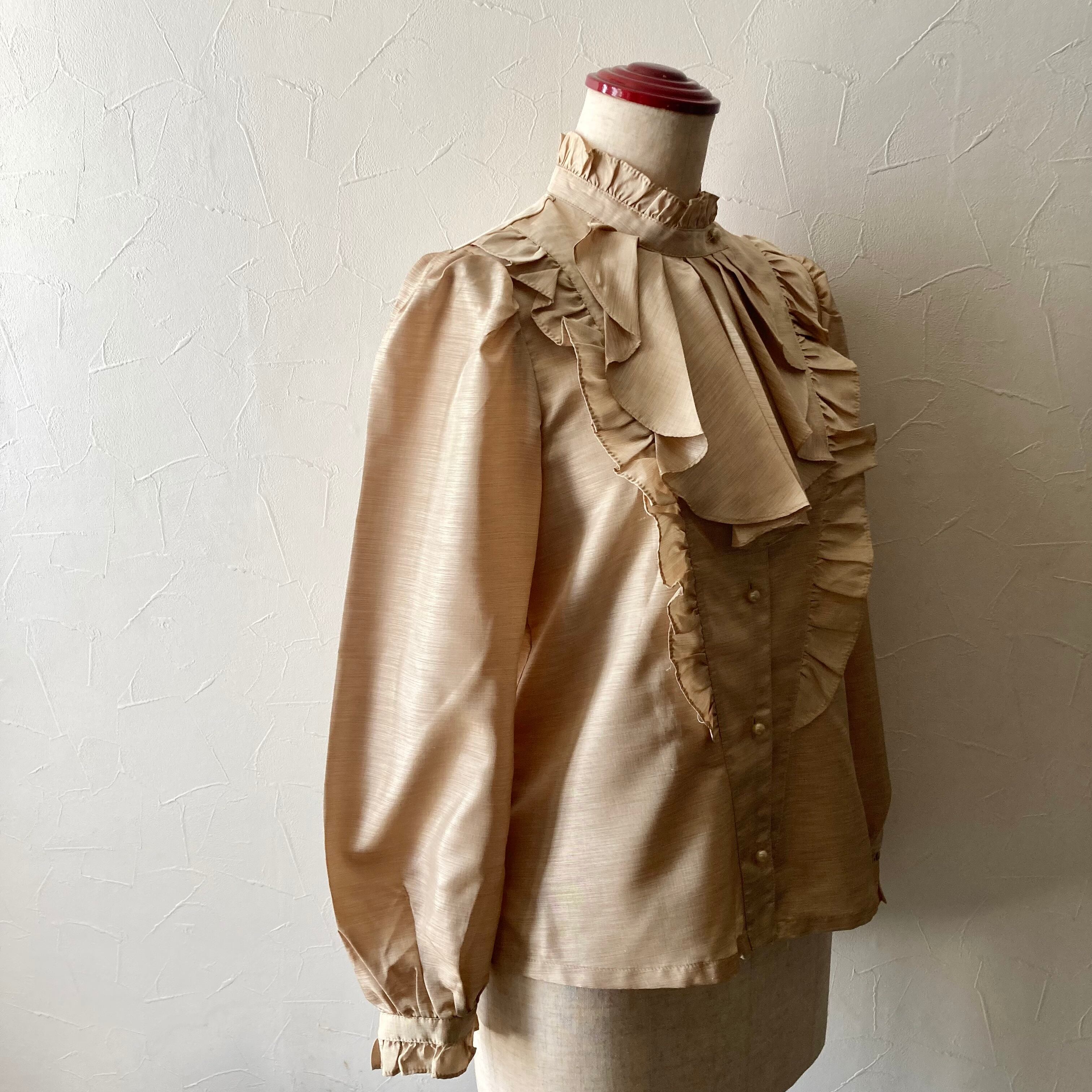 フリル付ベージュブラウス 古着 used vintage レトロ