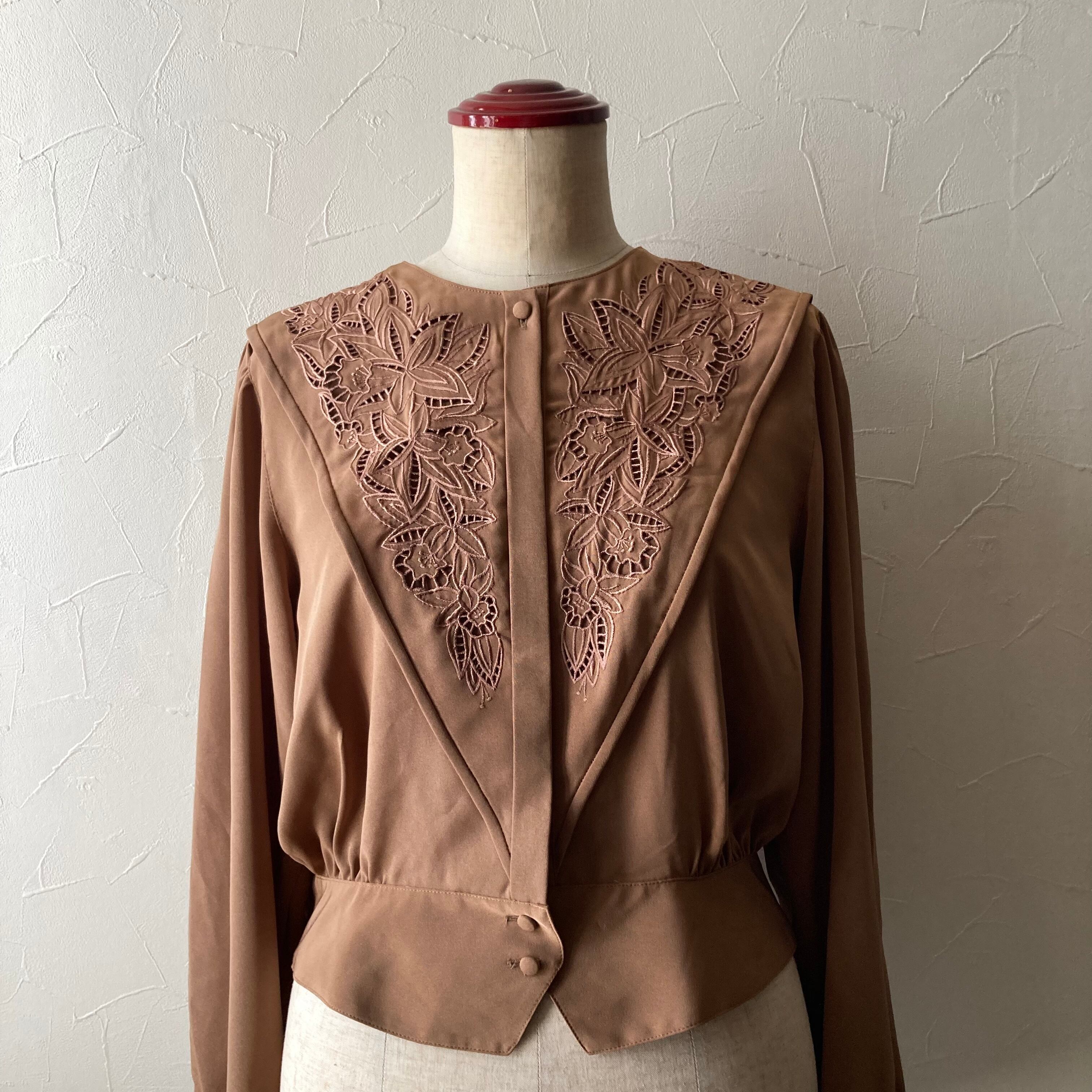カットワーク刺繍ブラウントップス 古着 used vintage レトロ