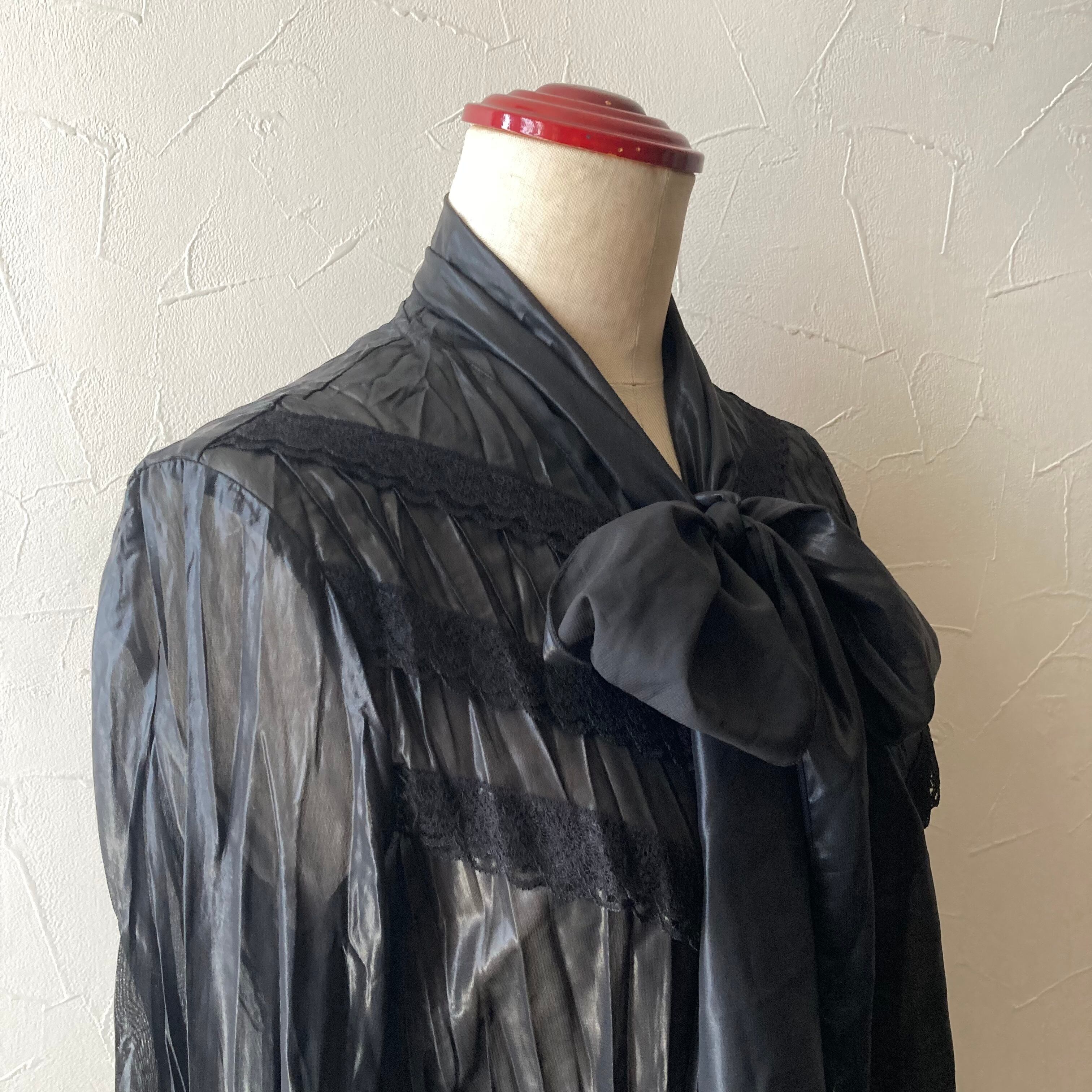 シワ加工リボンレースブラウス 古着 used vintage レトロ