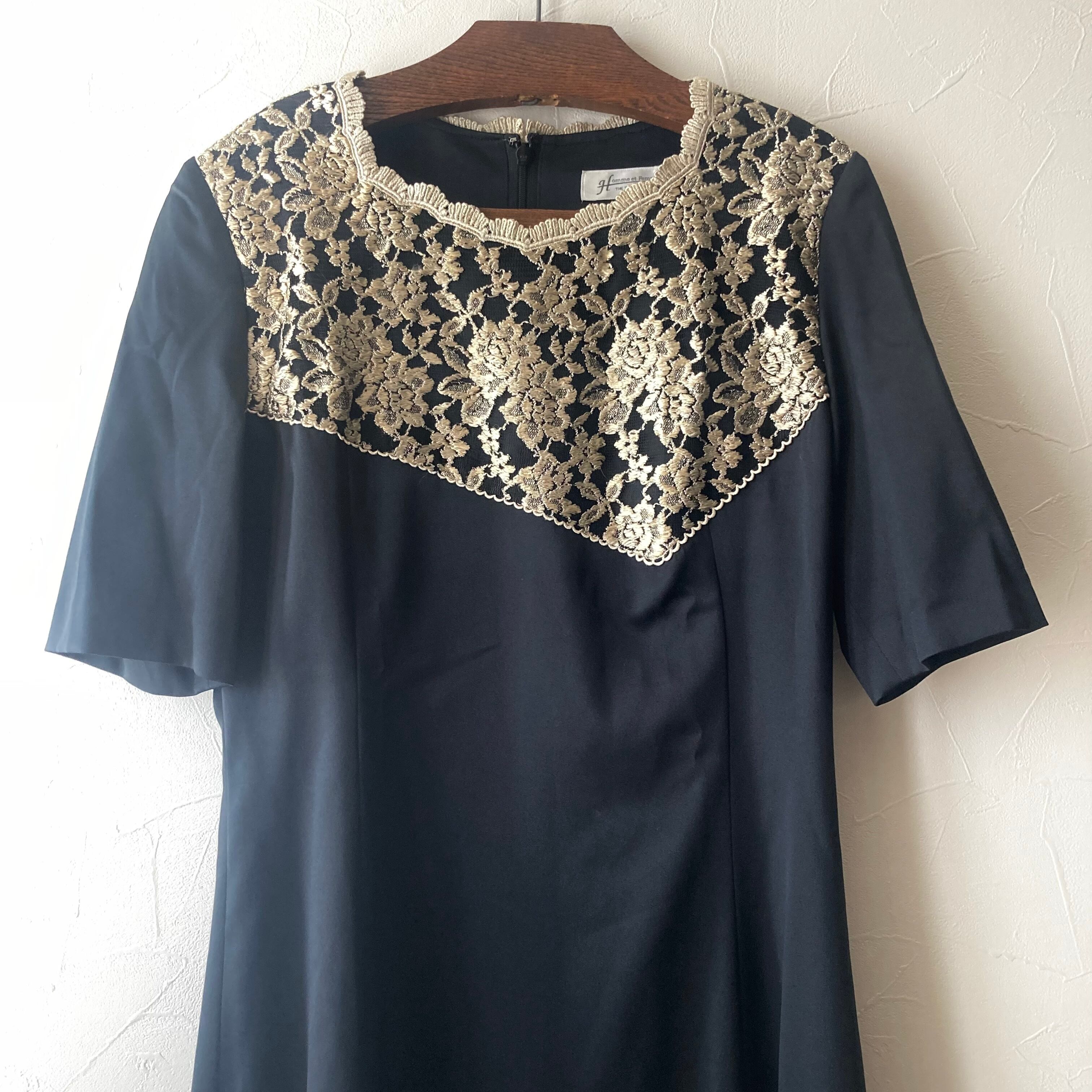 上品な黒色に白のレース刺繍がすてきなセミロングワンピース◯ しっかりとした素材で夏以外の季節に、今の時期は一枚で秋や冬は上着を羽織って着ていただけると思います。パーティなどお祝いの席にもおすすめです。