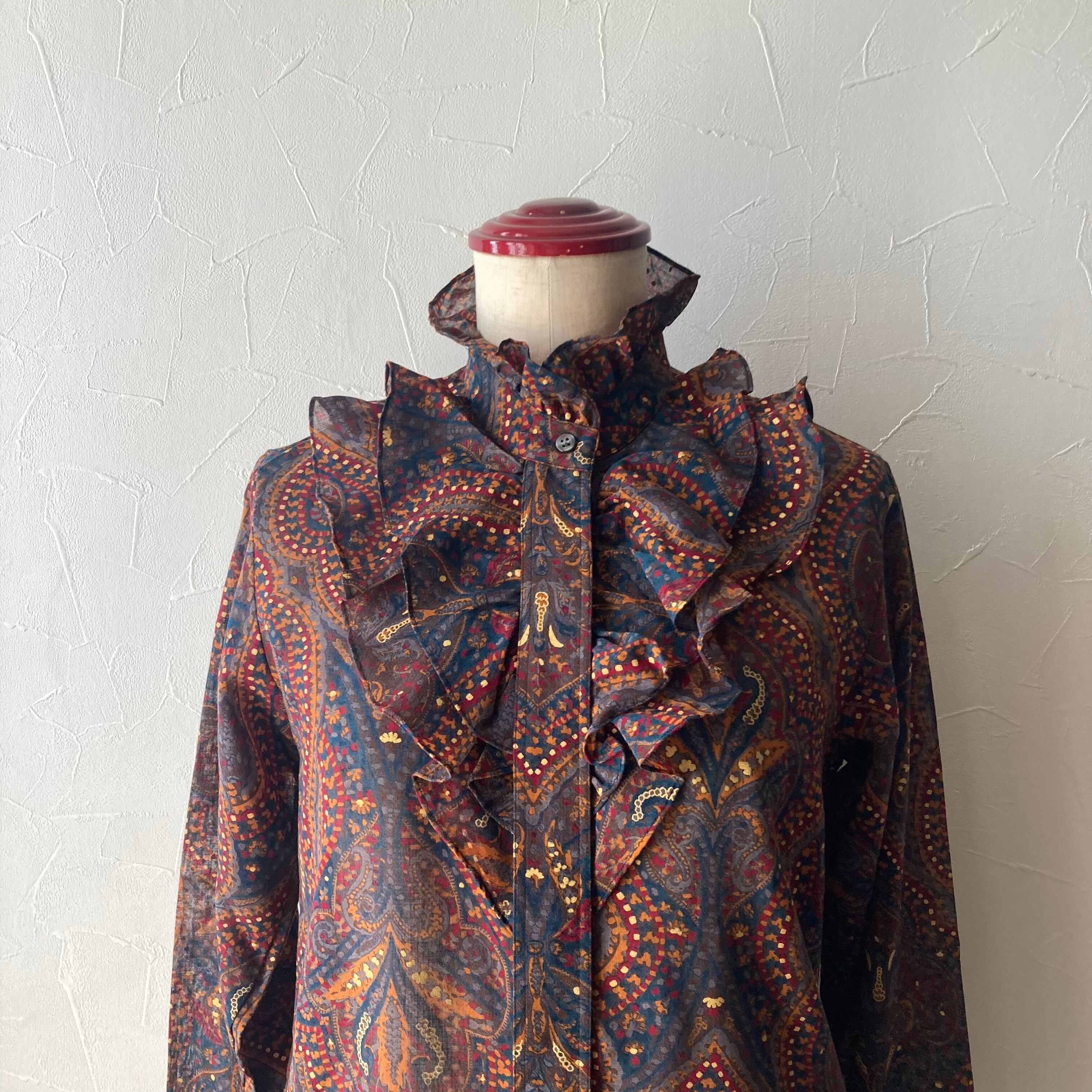 オリエンタルフリルリボン付きブラウス 古着 used vintage レトロ