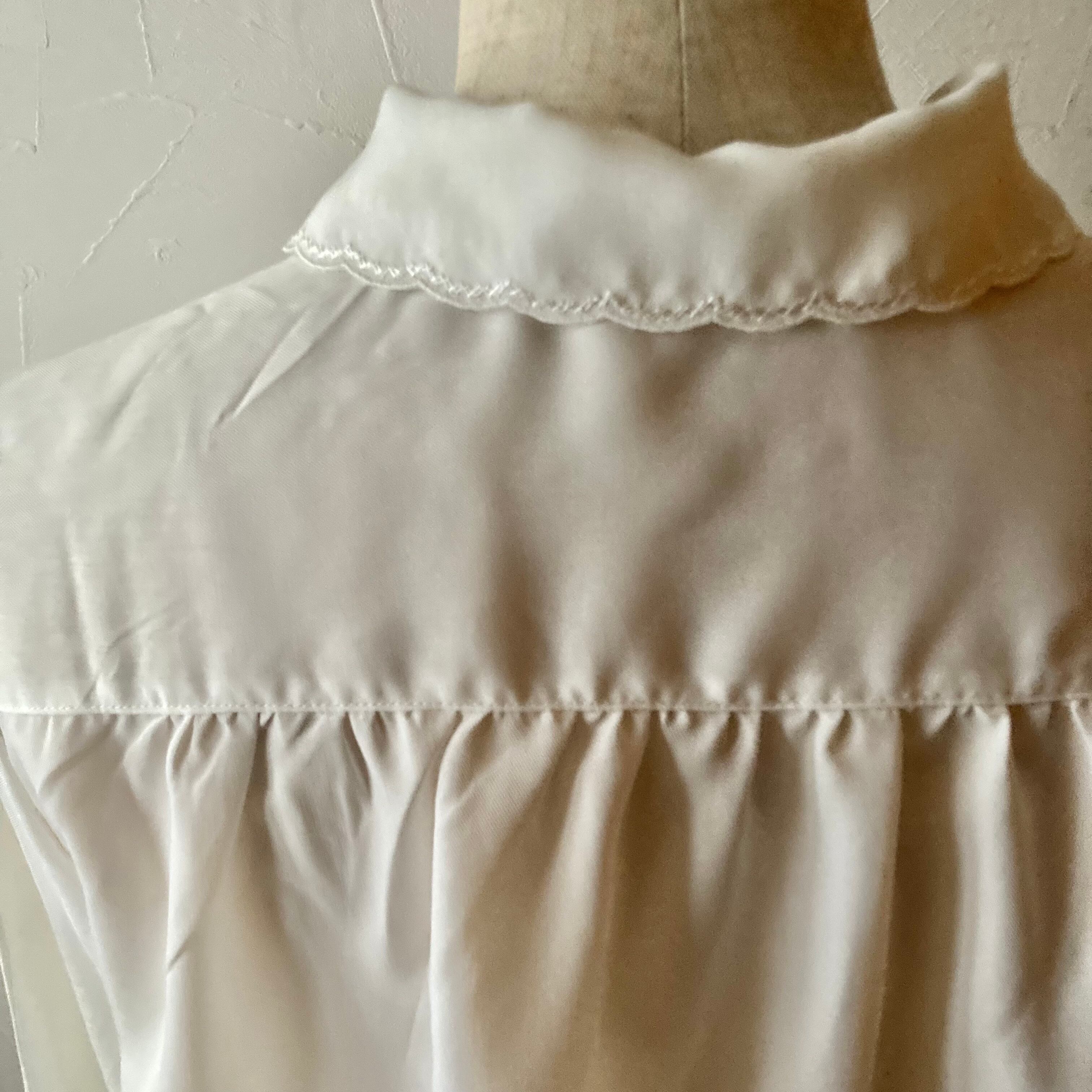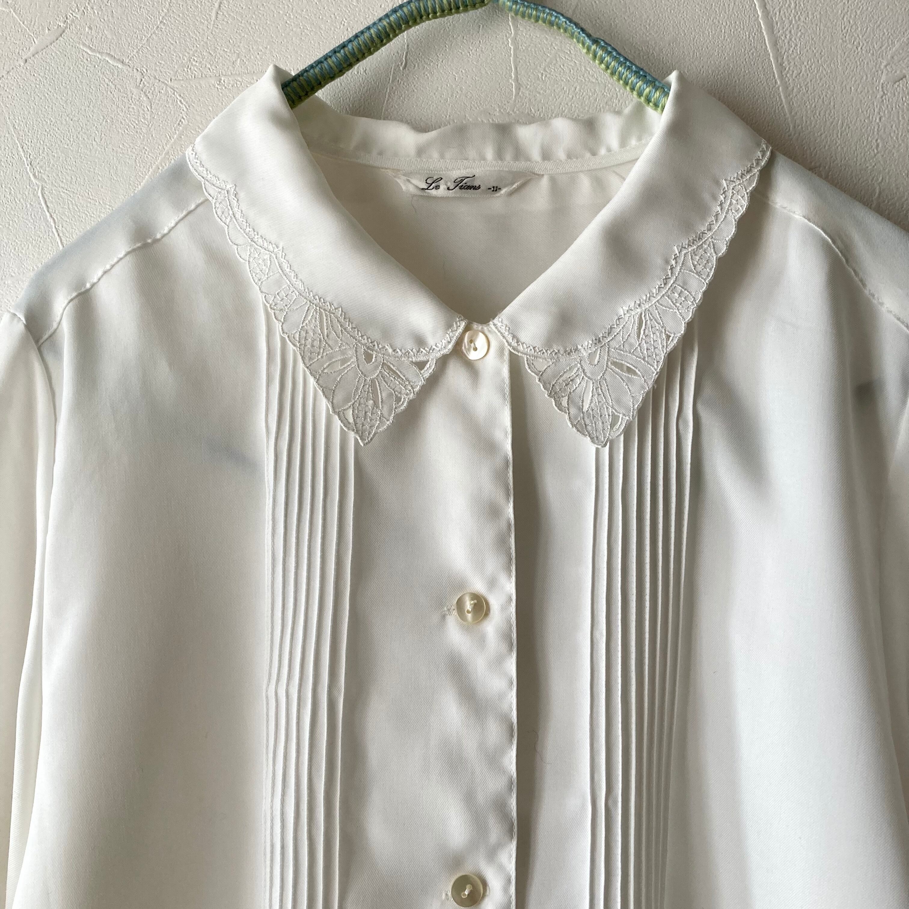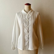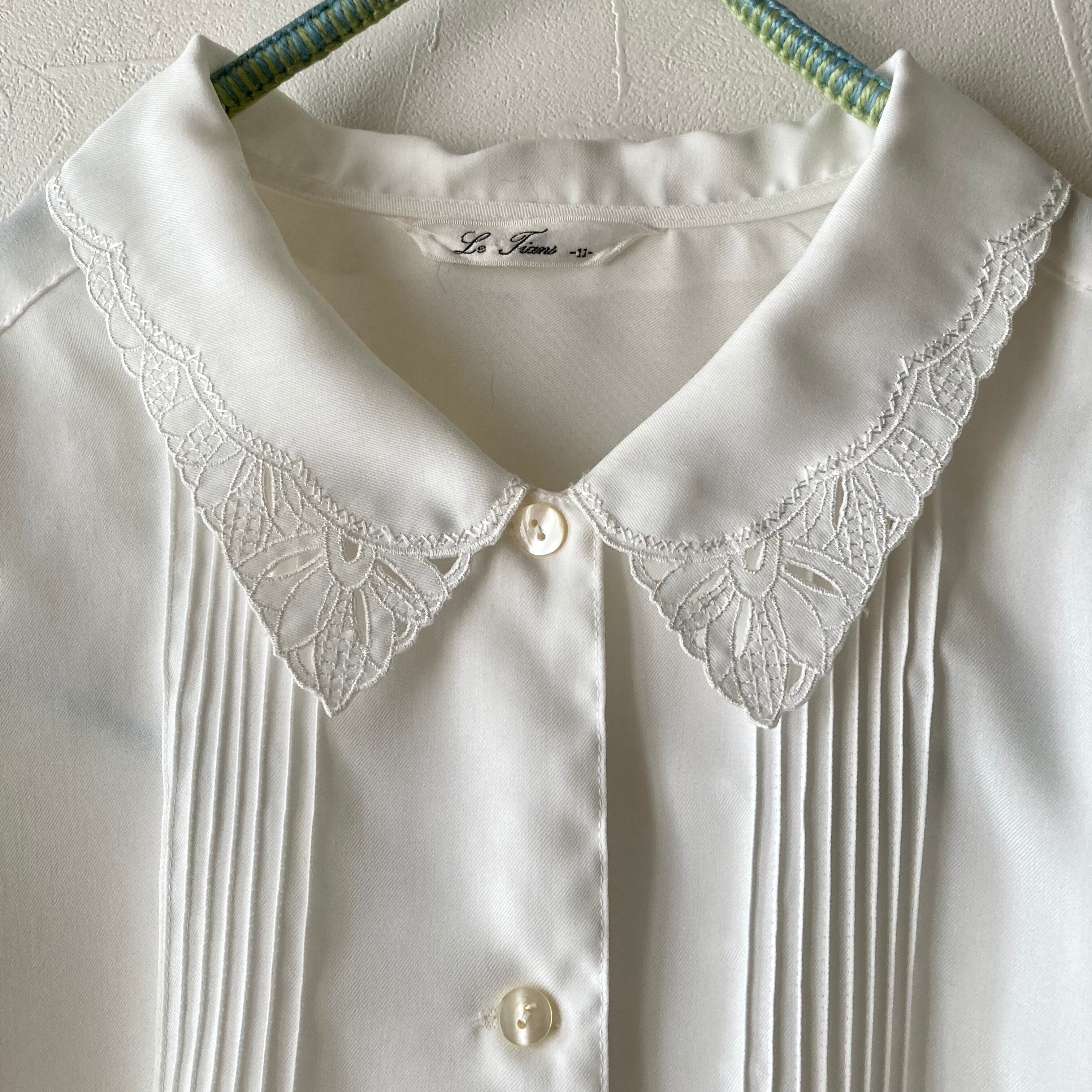 襟のカットワーク刺繍と縦のプリーツラインが素敵なレトロブラウス◯