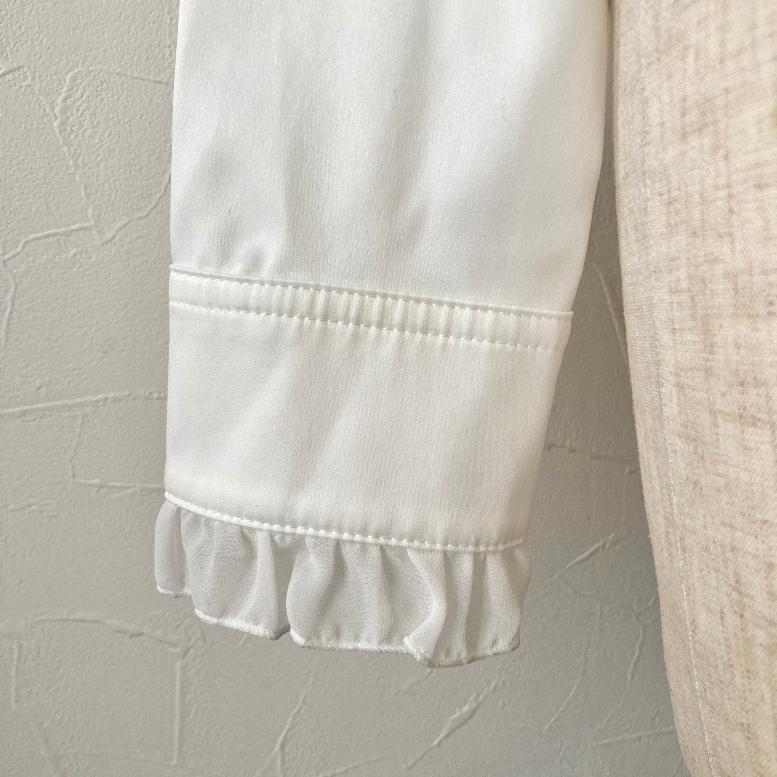 透け感のあるフリルと刺繍レースの二重使いが可愛いです。きちんとした席やお仕事にも使いやすい一枚だと思います。