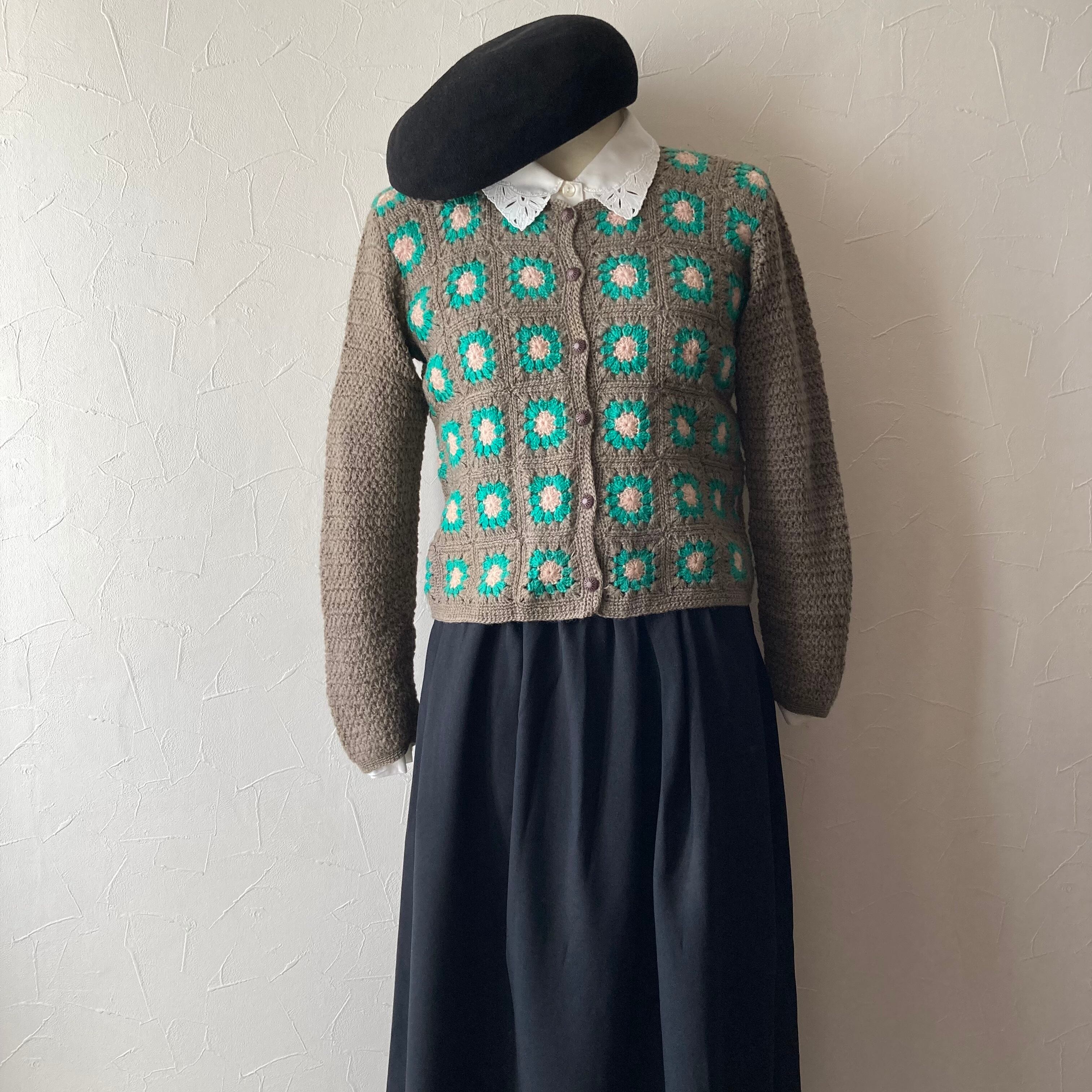 花モチーフニットカーディガン 古着 used vintage レトロ