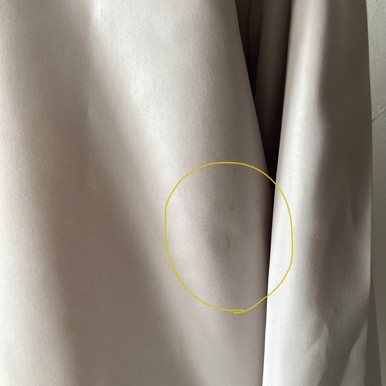 ※ 後ろ側右端に汚れが見られます。着てみるとシワになったりと左の隅の方なのであまり目立つものではないと思いますが、最後の画像でご確認ください。