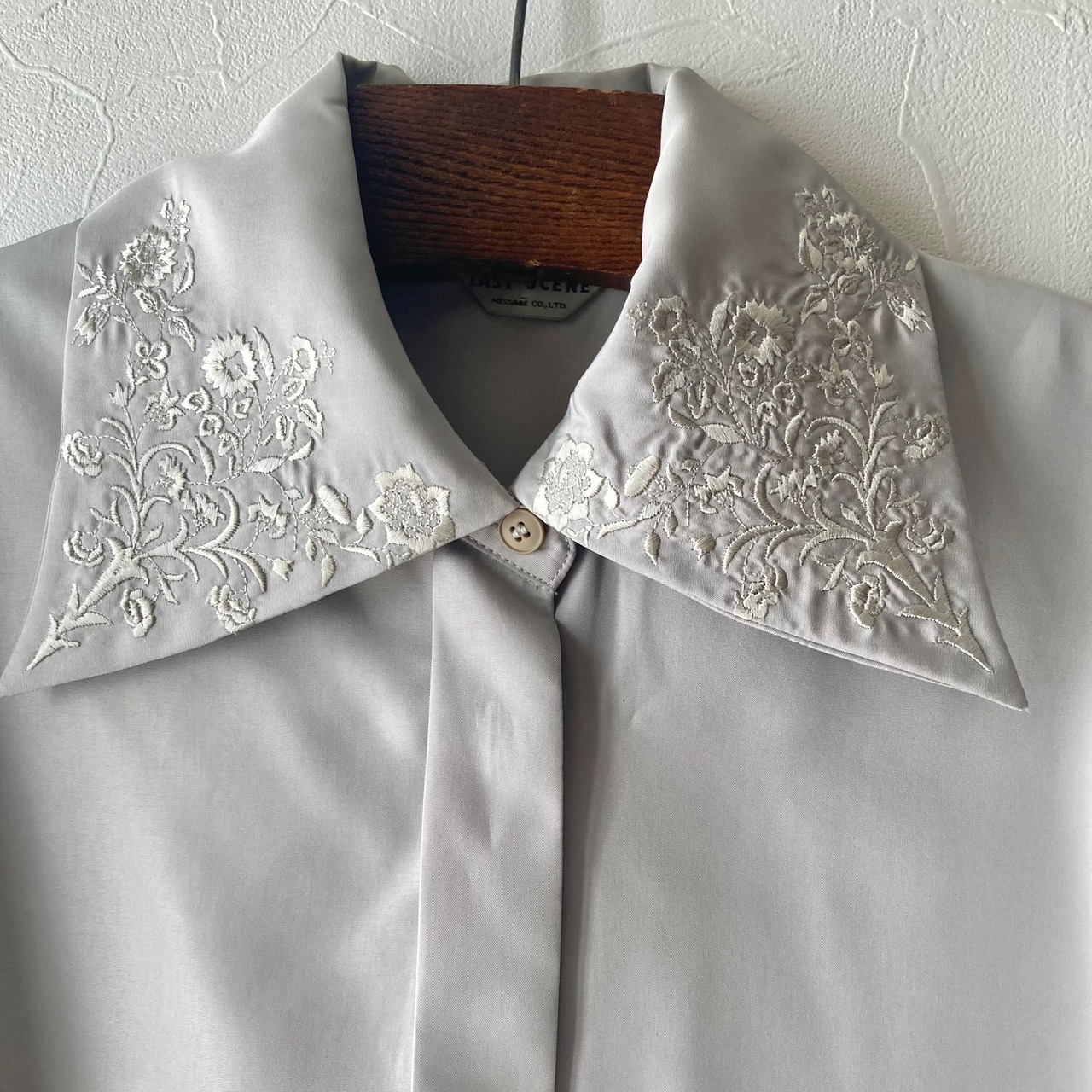 大きな刺繍襟が魅力的なブラウス◯ アイスグレーのような色も素敵です。