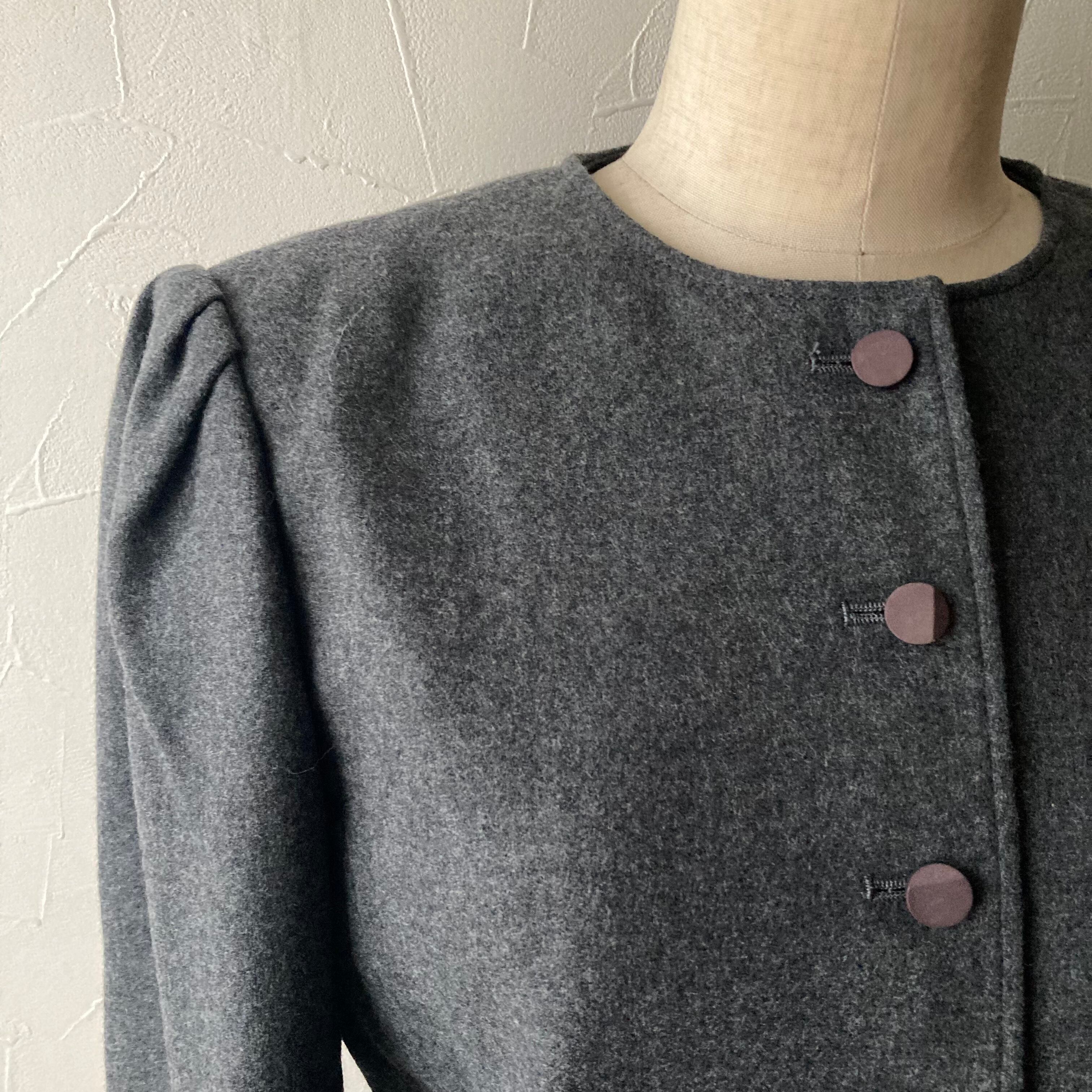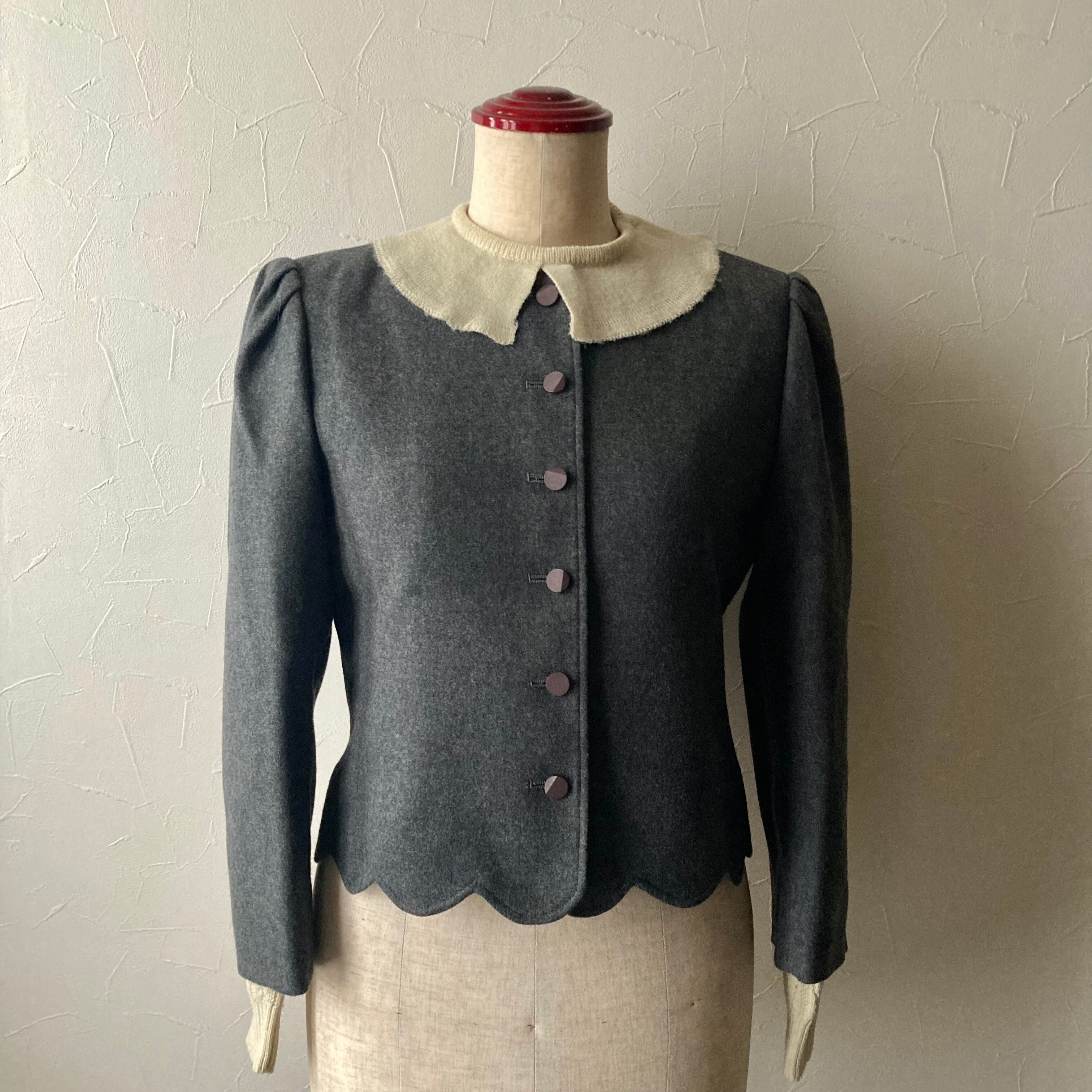 落ち着いたグレーにパフスリーブ、裾はスカラップデザインのレトロなジャケット◯