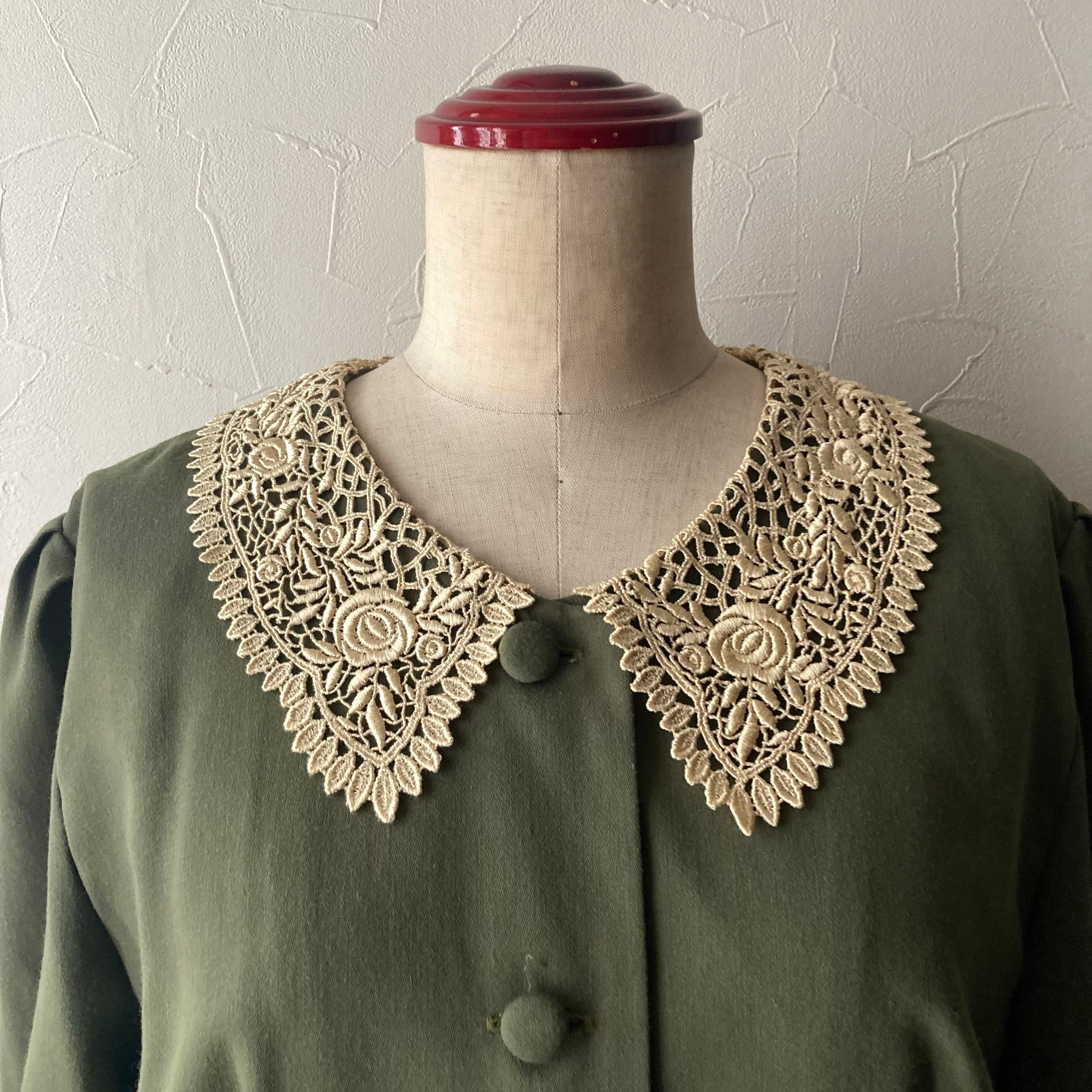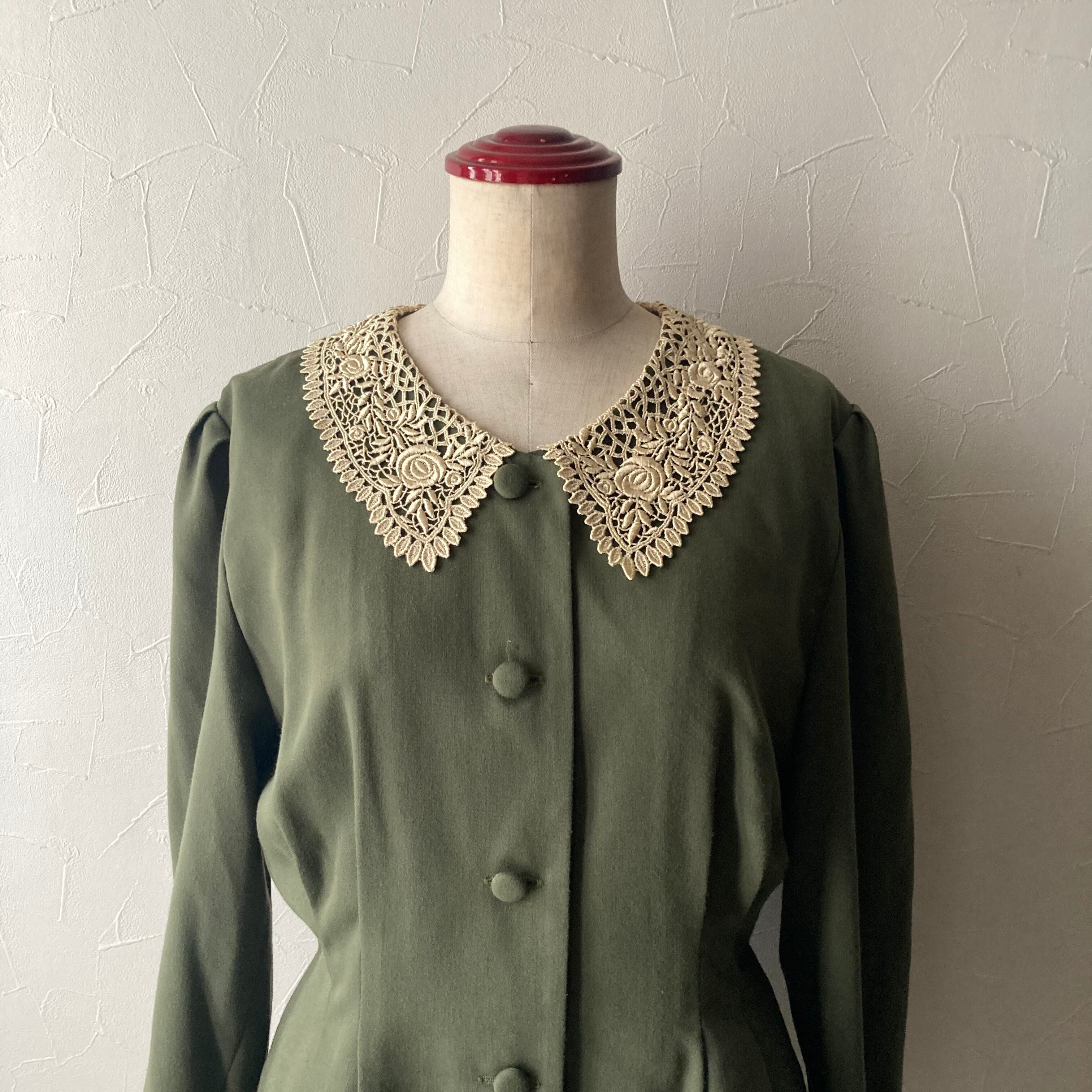 グリーンレース襟ジャケット 古着 used vintage レトロ