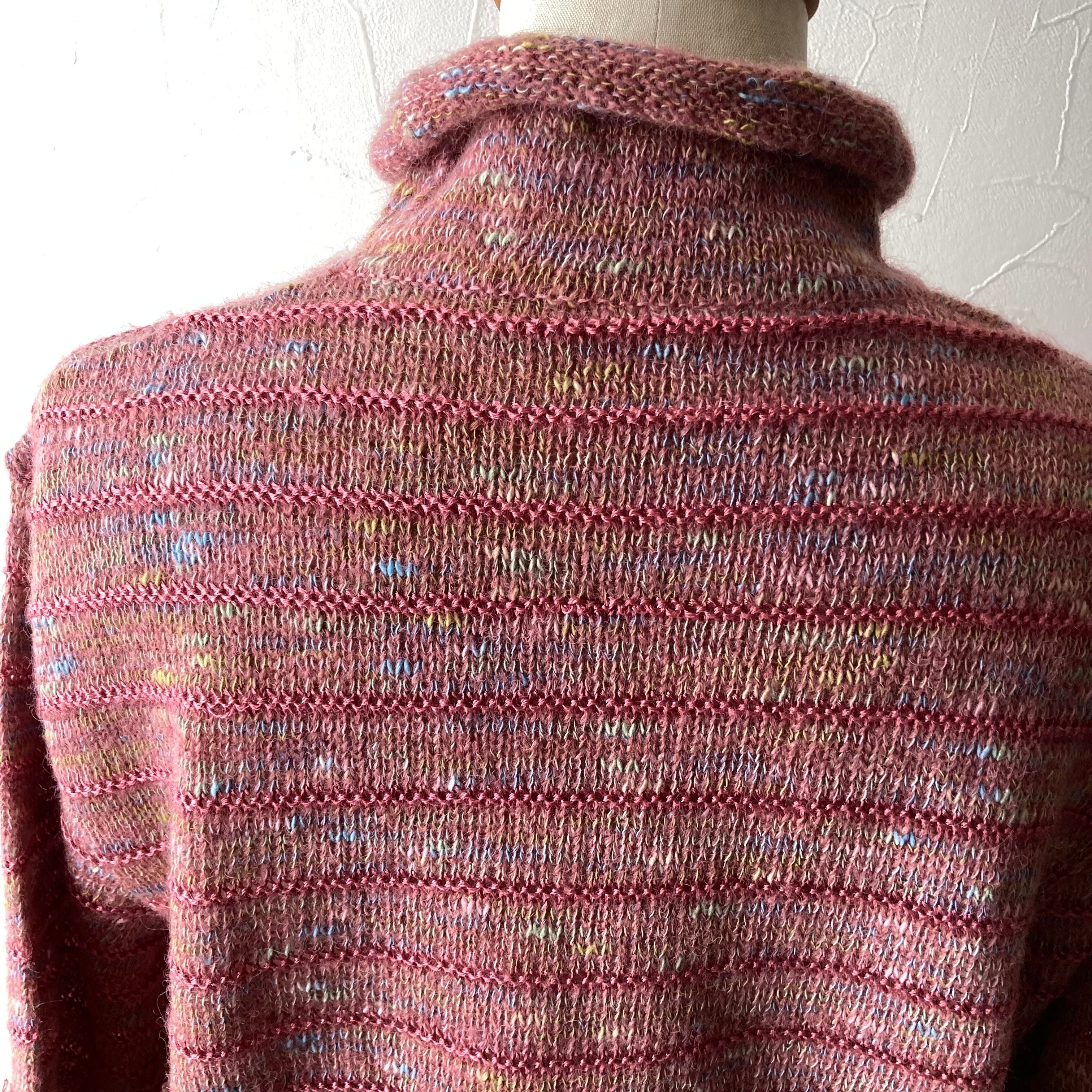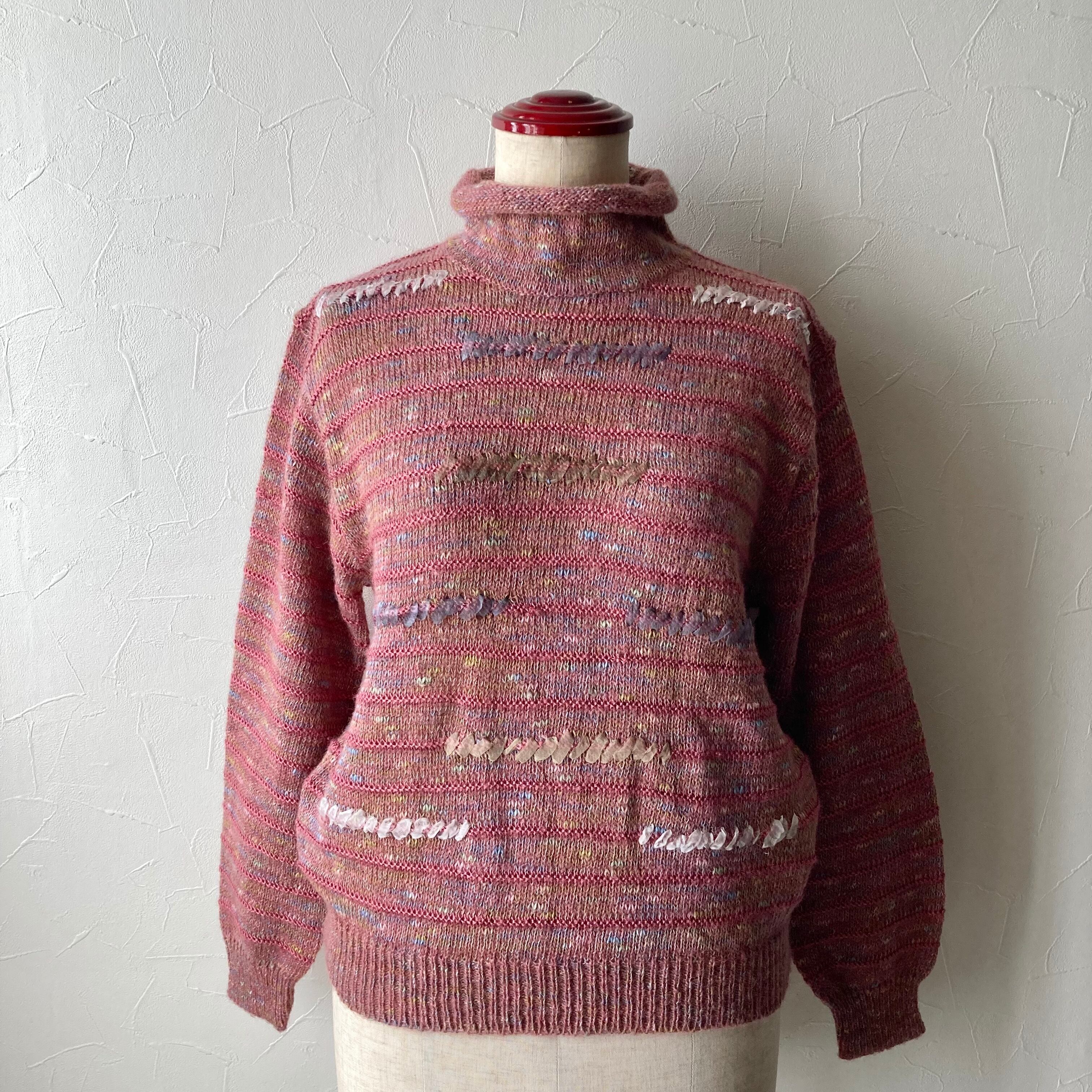 くすんだミックスカラーのニットにレース装飾が付いた可愛いデザインのタートルニット◯