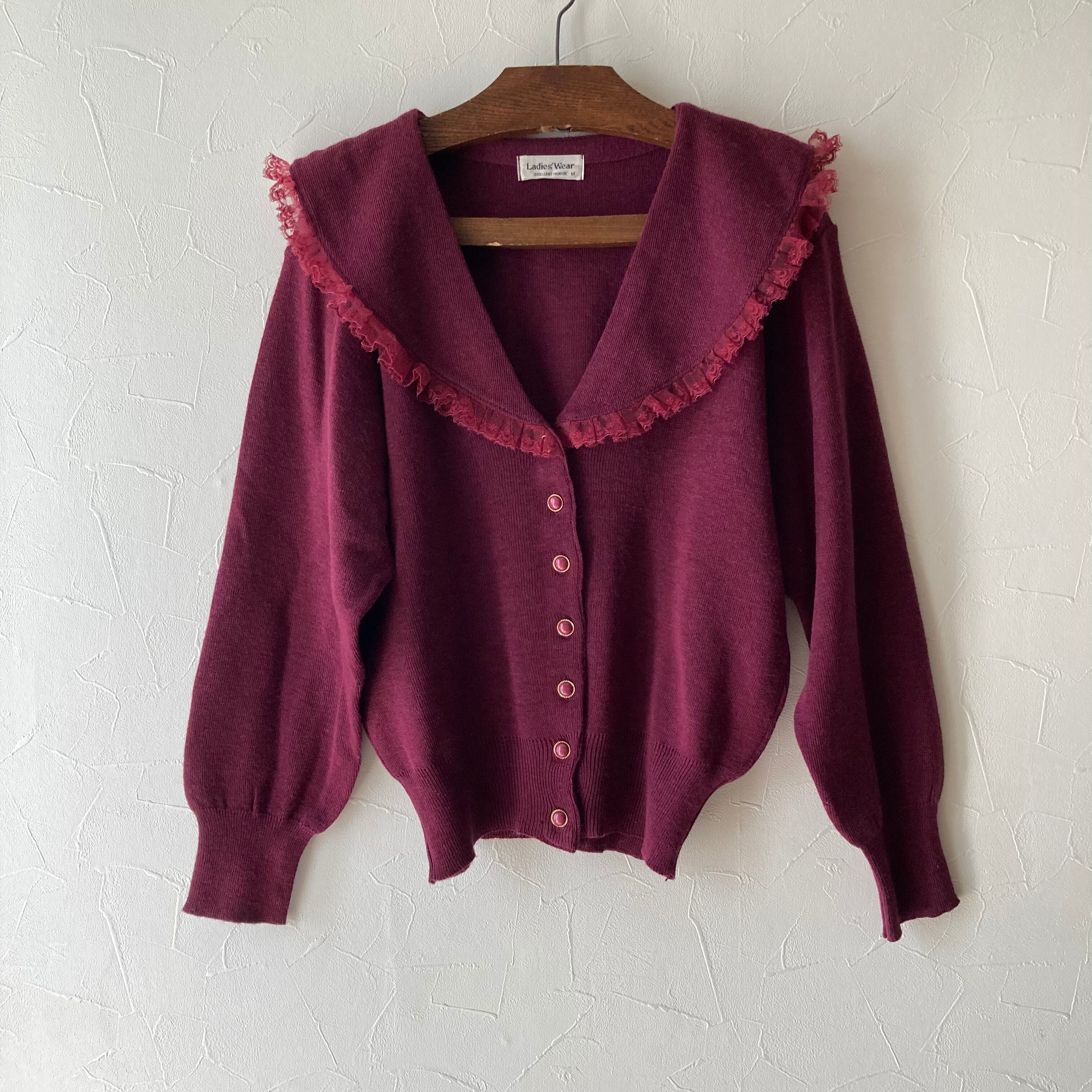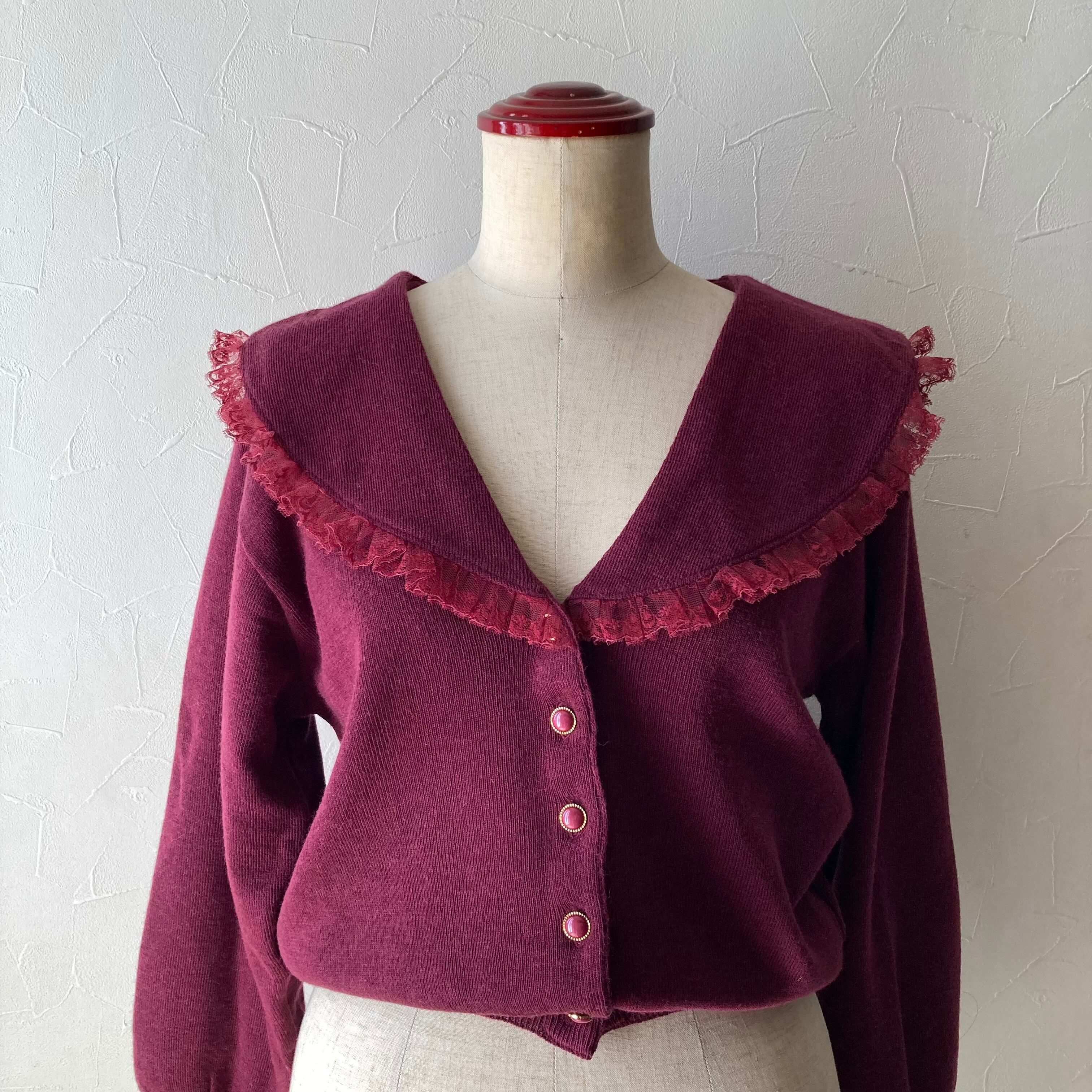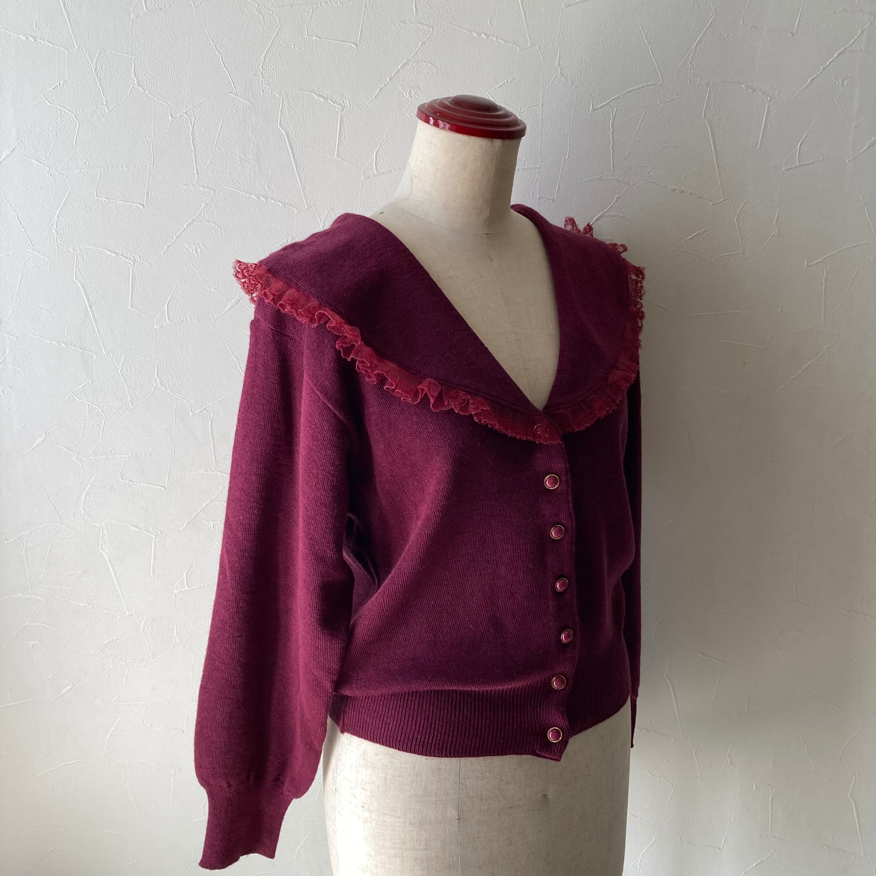 ワインレッドレース襟カーディガン 古着 used vintage レトロ
