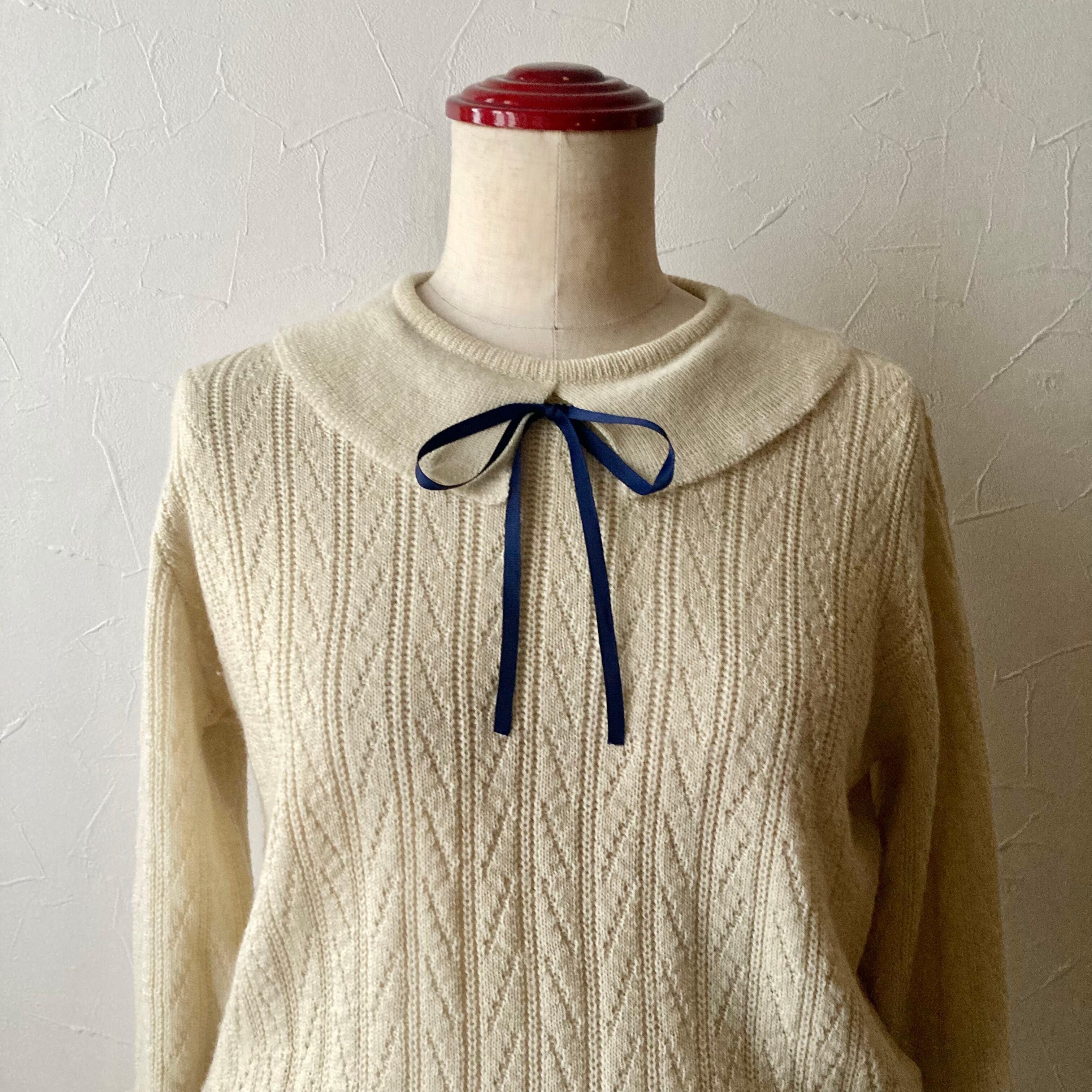 襟付きアイボリーニット 古着 used vintage レトロ