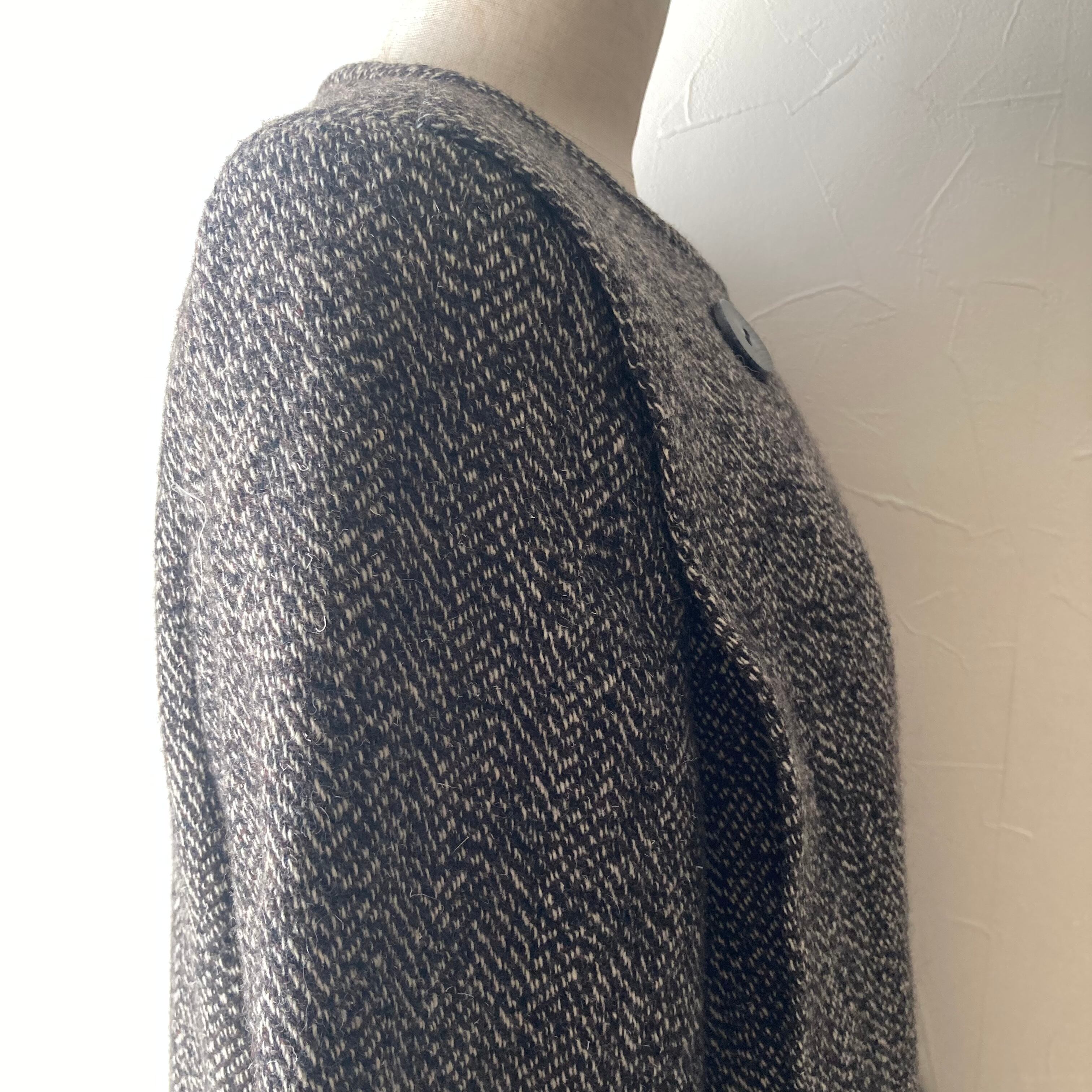 ノーカラーのダブルボタンのすとんとしたシルエットが可愛らしいジャケットです。ツイードの温かみのある雰囲気で寒い冬もおしゃれに過ごせそうです。パンツスタイルにもロングスカートにもモードにカジュアルに自由に着ていただけると思います。