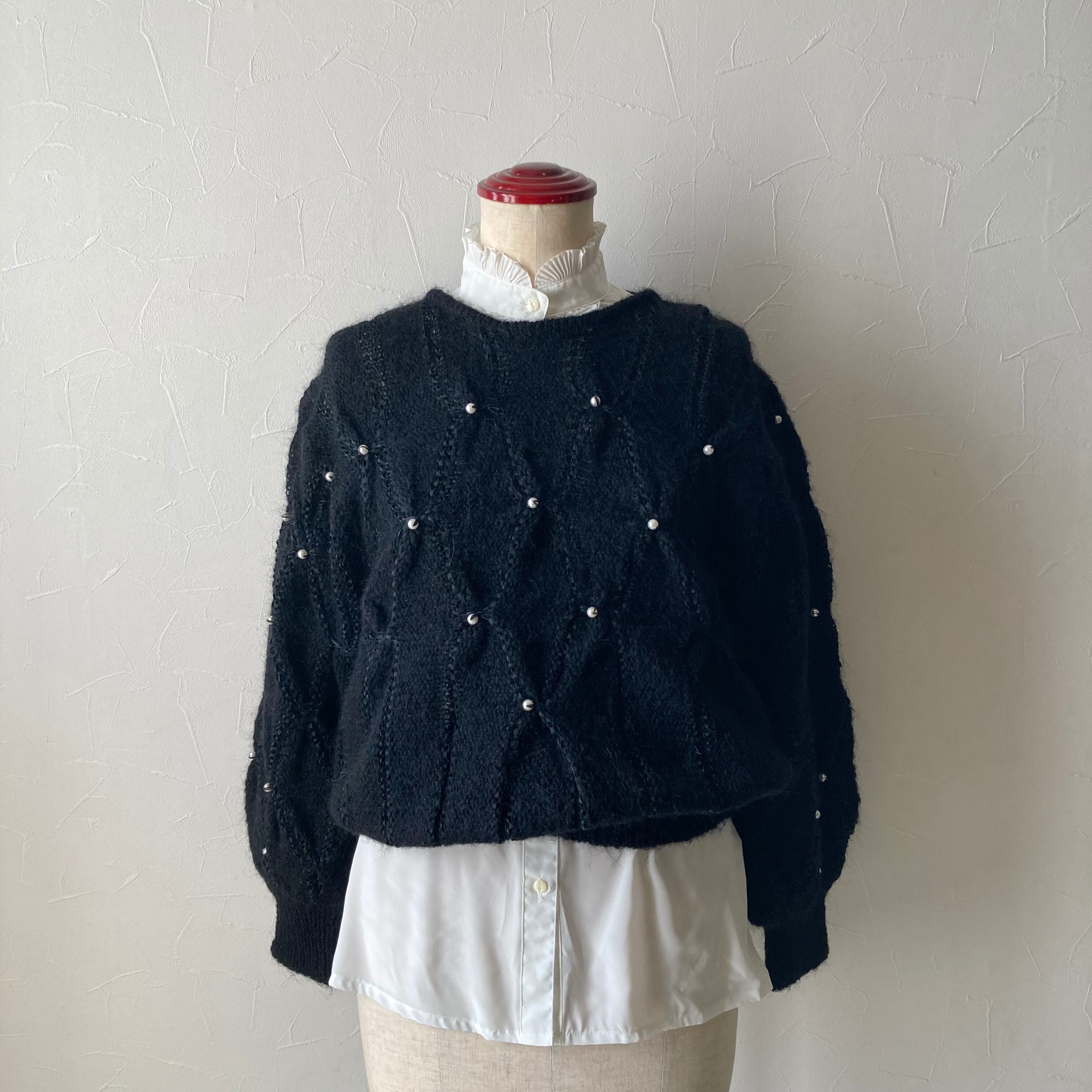 パールビーズ装飾ニット 古着 used vintage レトロ