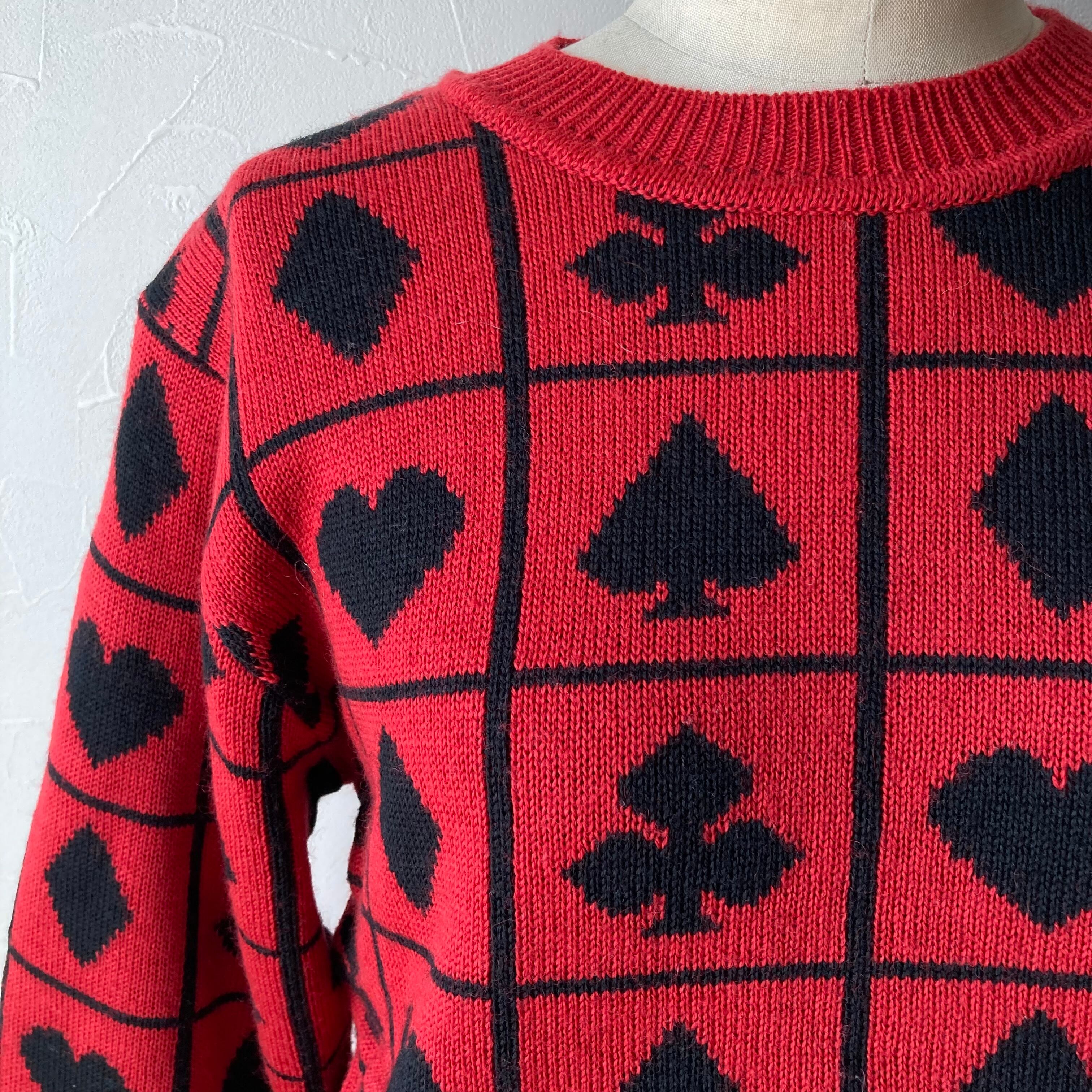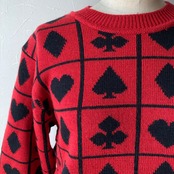 パキッとしたかっこよさと可愛さを兼ね備えたトランプ柄のニット◯ 厚みのあるしっかりとした素材ですが滑らかな肌触りで着心地も良さそうです。古着らしい雰囲気がとってもステキでレトロお洒落なコーデが楽しめそうです。