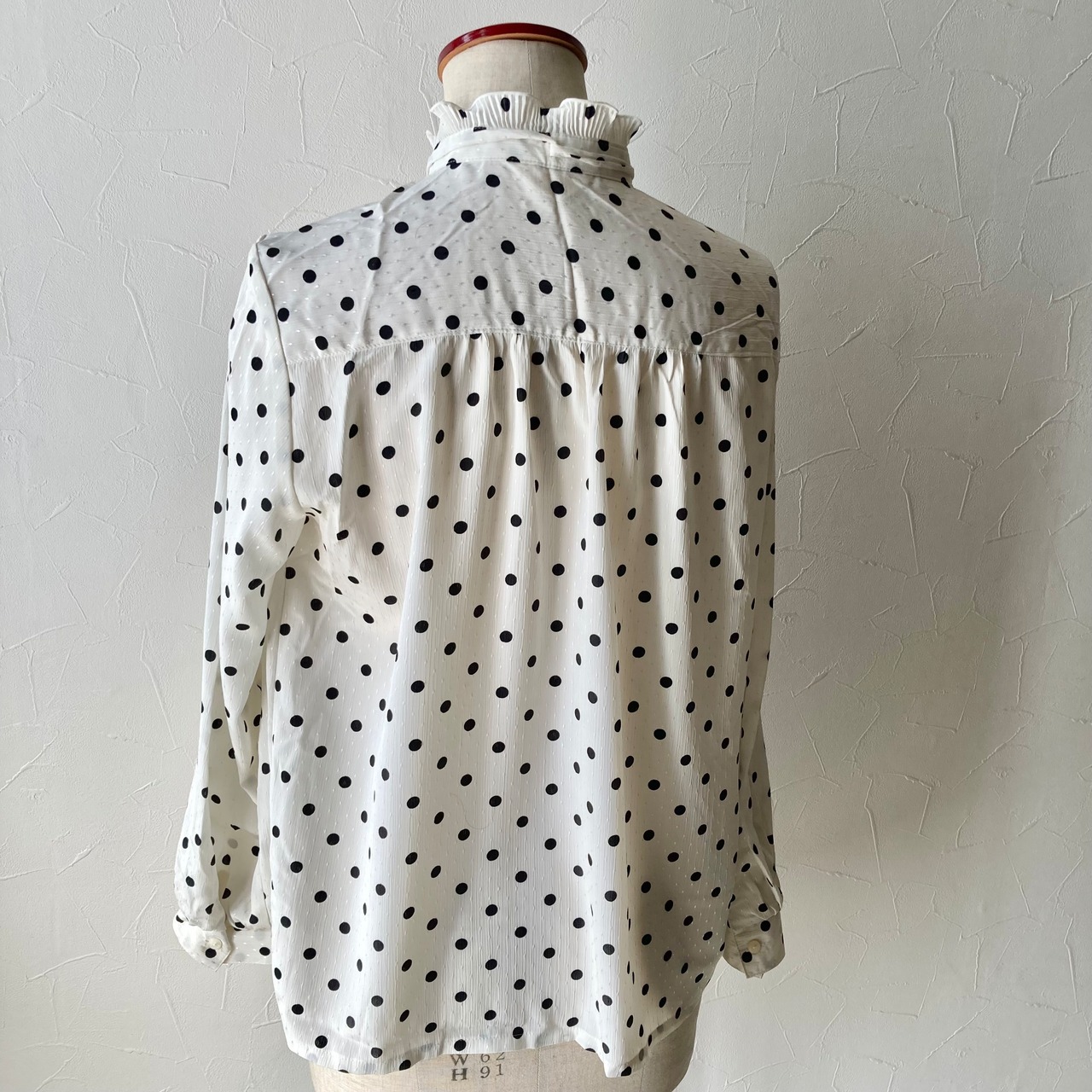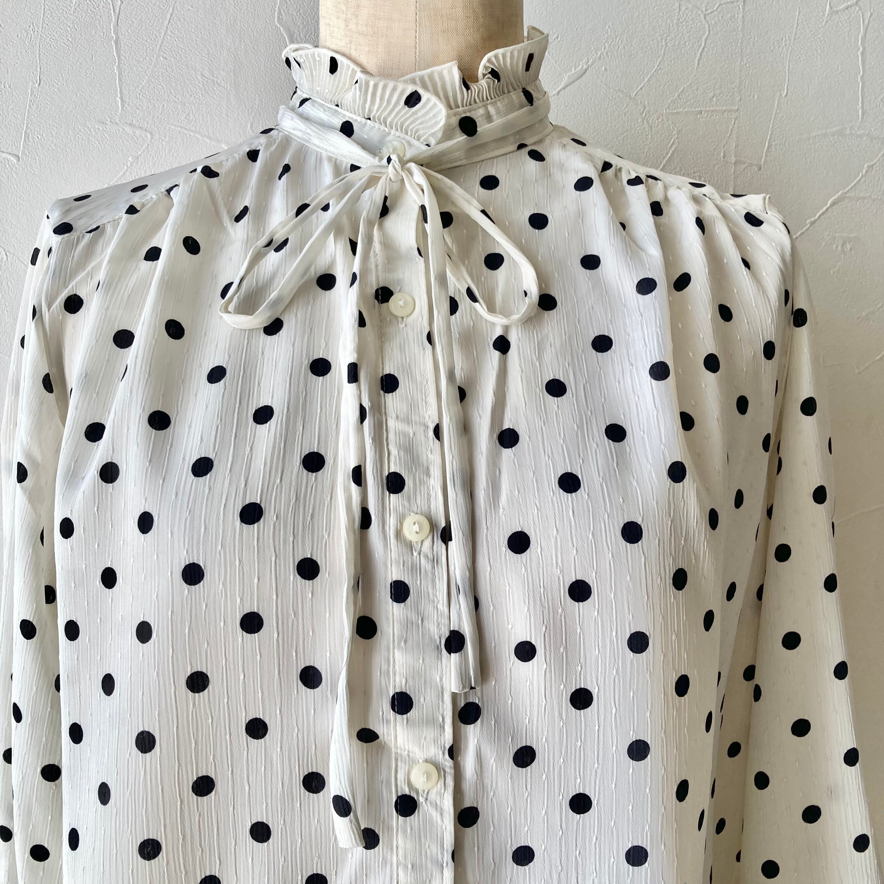 白×黒水玉リボンブラウス 古着 used vintage レトロ