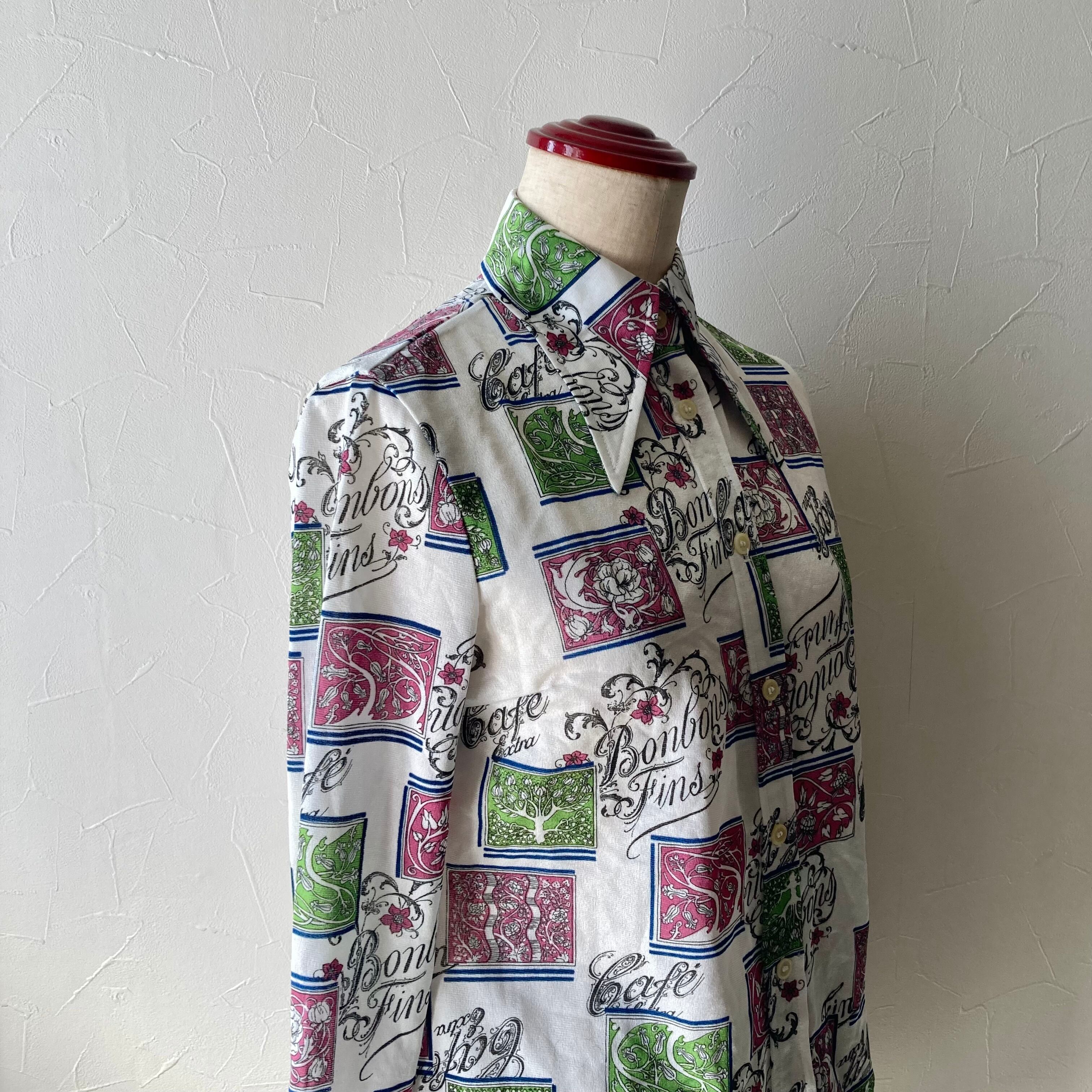 ヨーロッパ調のイラストがステキな柄ブラウス◯