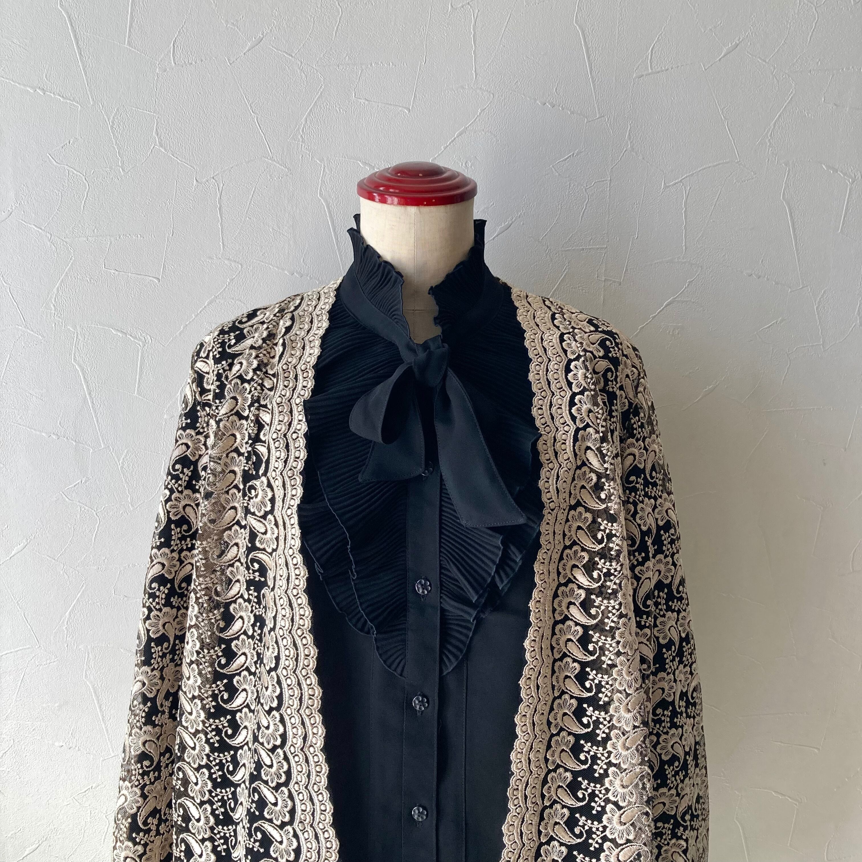 シックでアンティークな雰囲気がとってもステキです。下に着るお洋服の色によって浮き出る柄の濃淡も変わるので、色々なコーデが楽しめそうです。ひとつ羽織るだけで雰囲気が出るので、お洒落着にもカジュアルな日にもおすすめです。