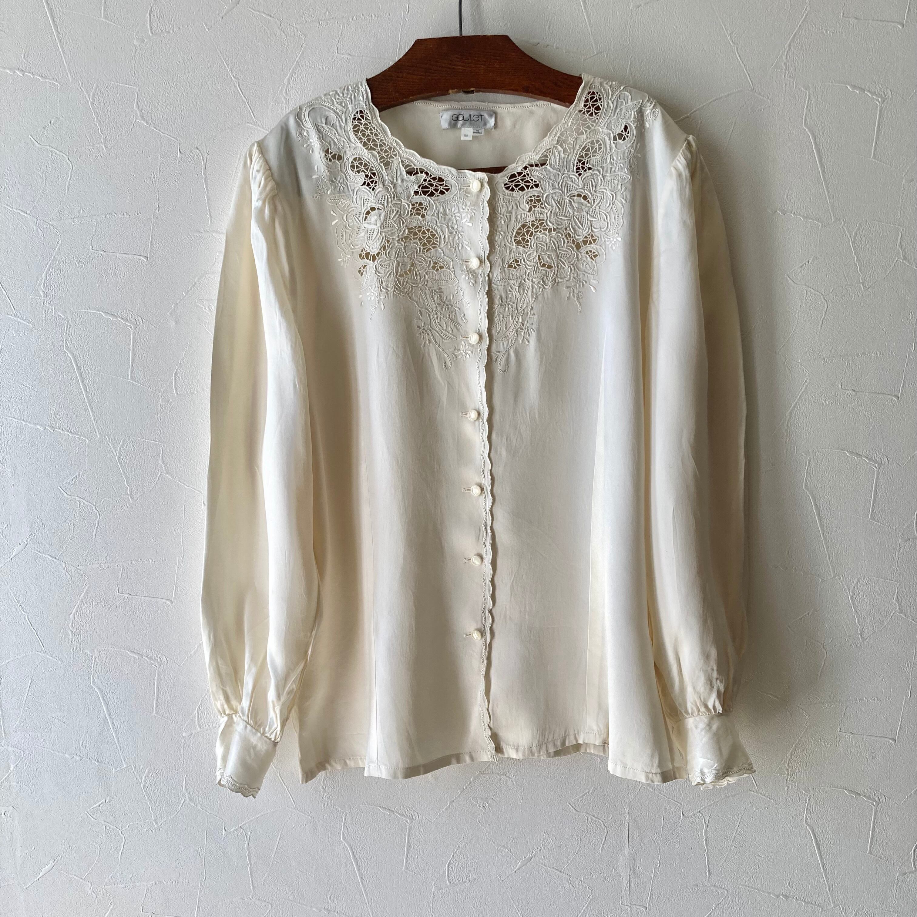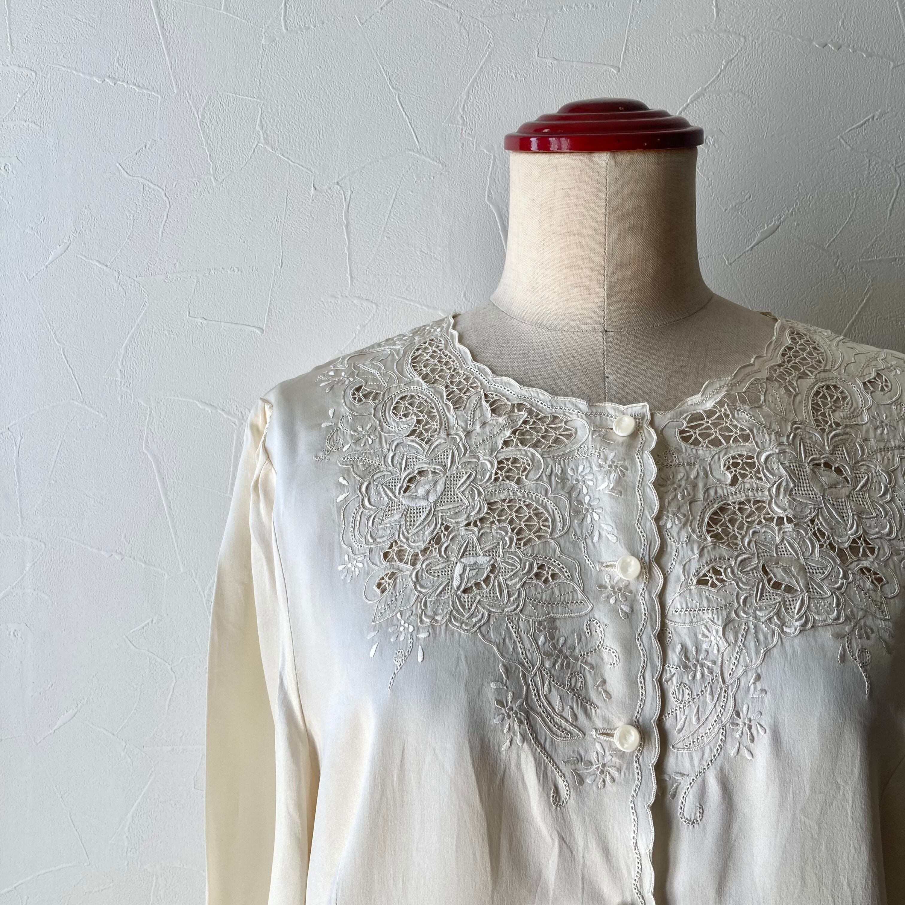 シルクカットワーク刺繍ブラウス 古着 used vintage レトロ