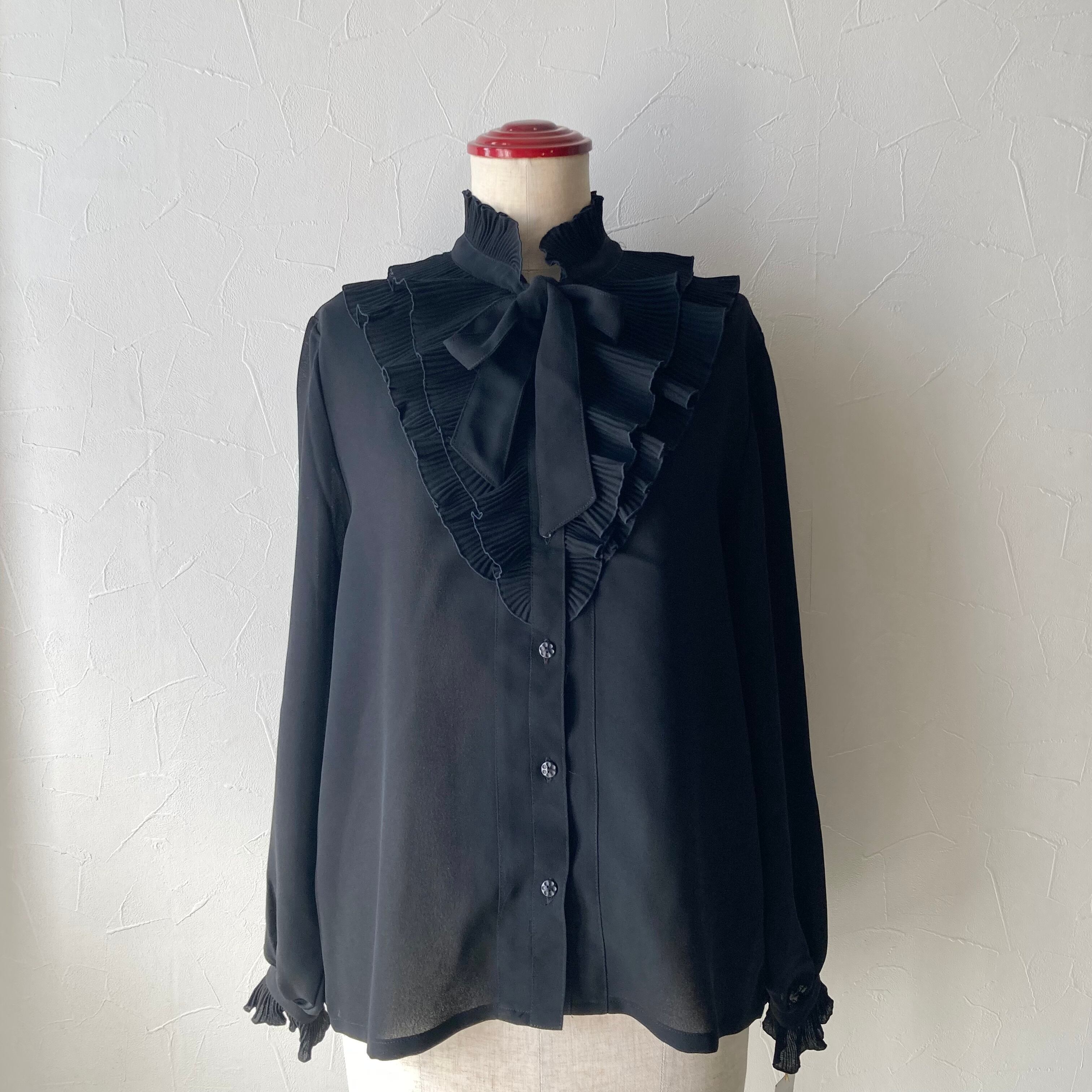 ◯未使用品◯黒フリルリボンブラウス 古着 used vintage レトロ