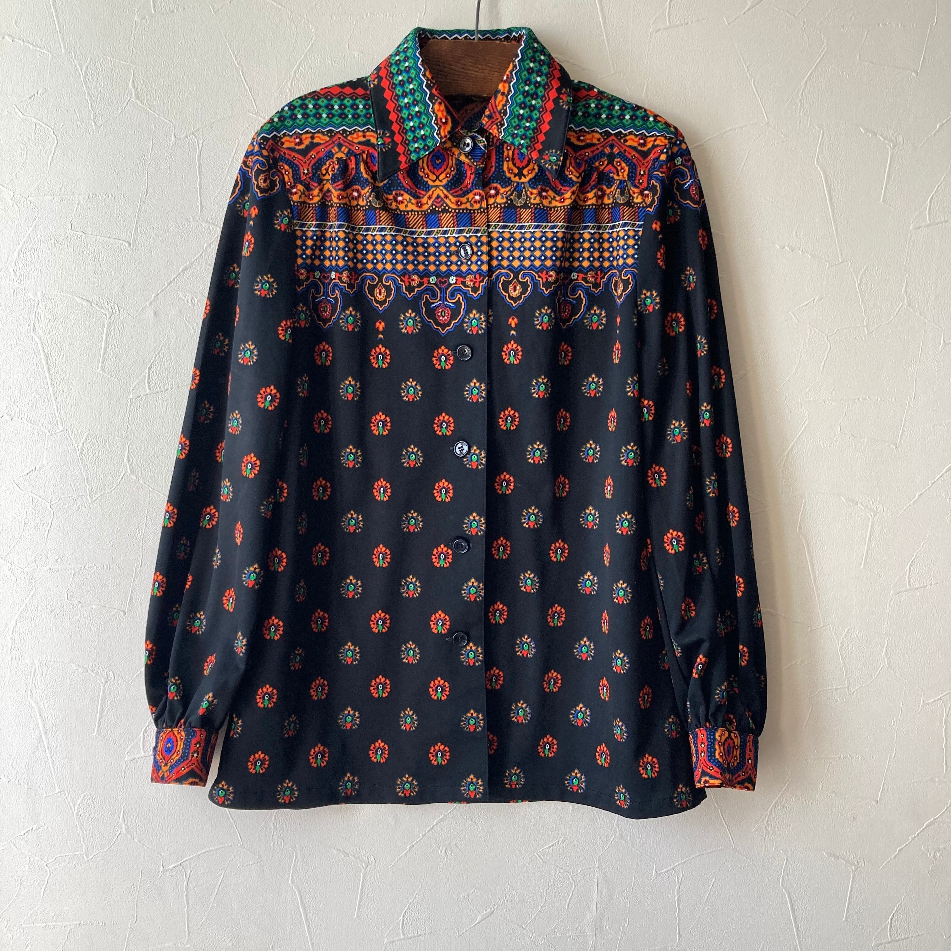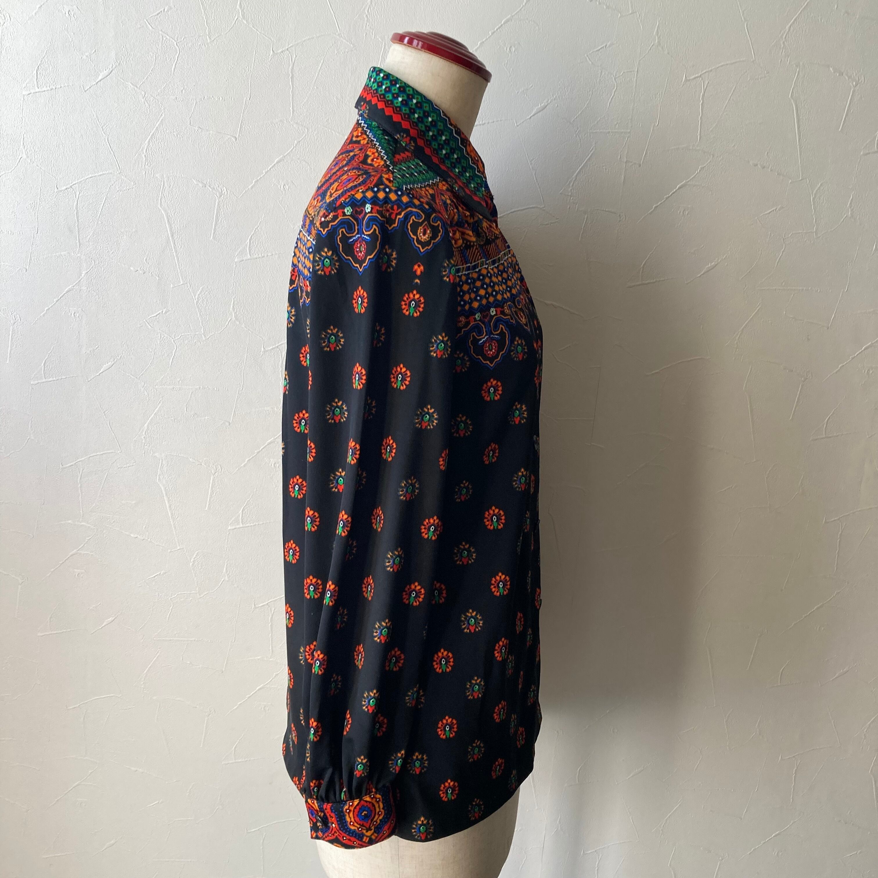 オリエンタルな70sな雰囲気の柄がかっこよいレトロブラウス◯