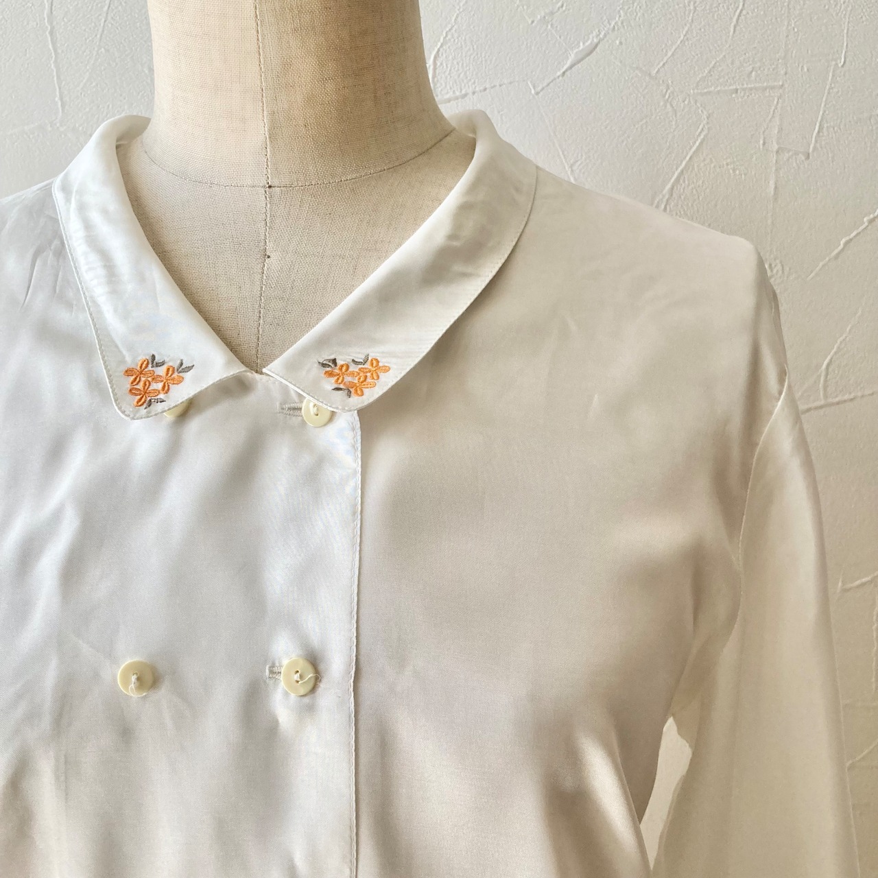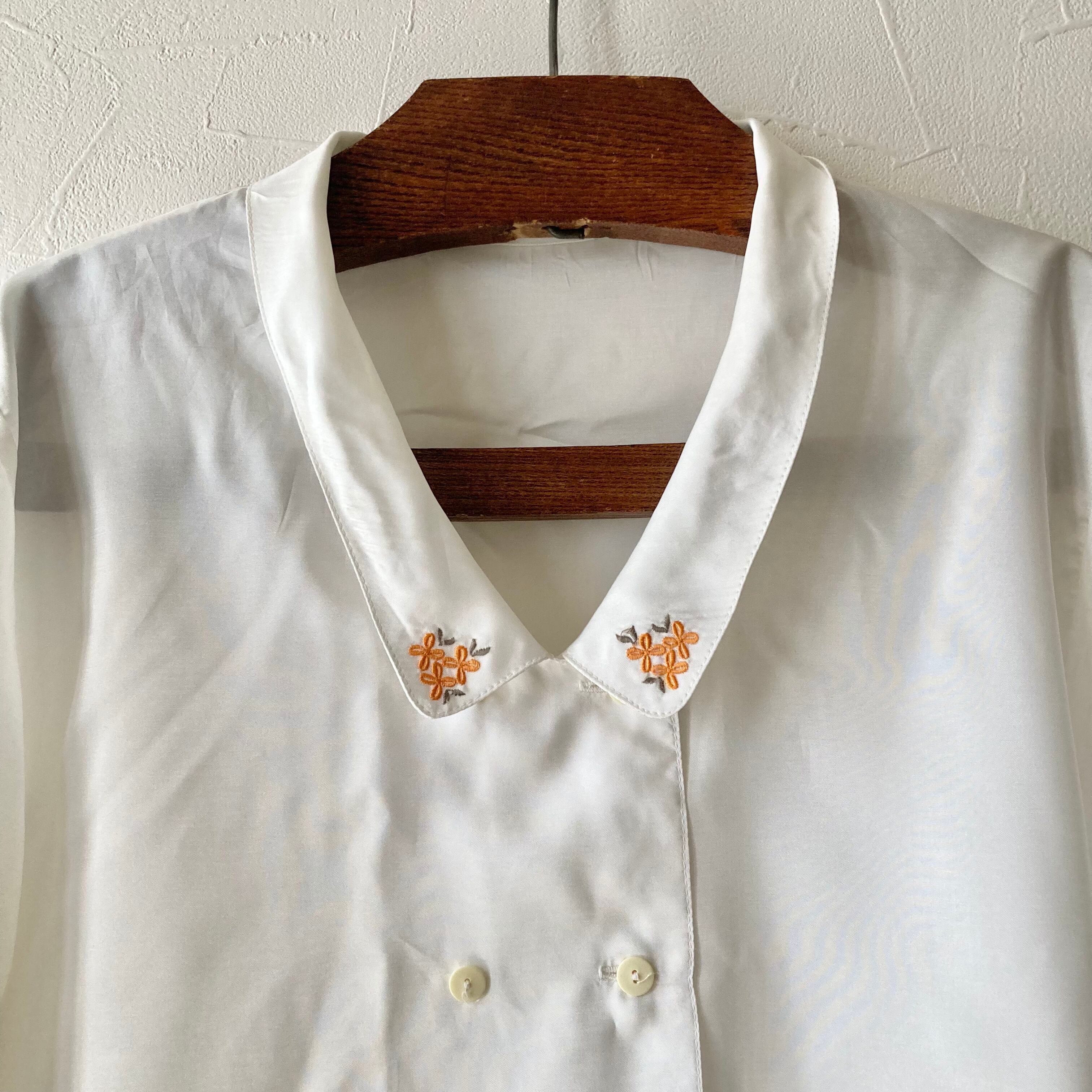 華奢な花刺繍襟が可愛らしいレトロなブラウス◯