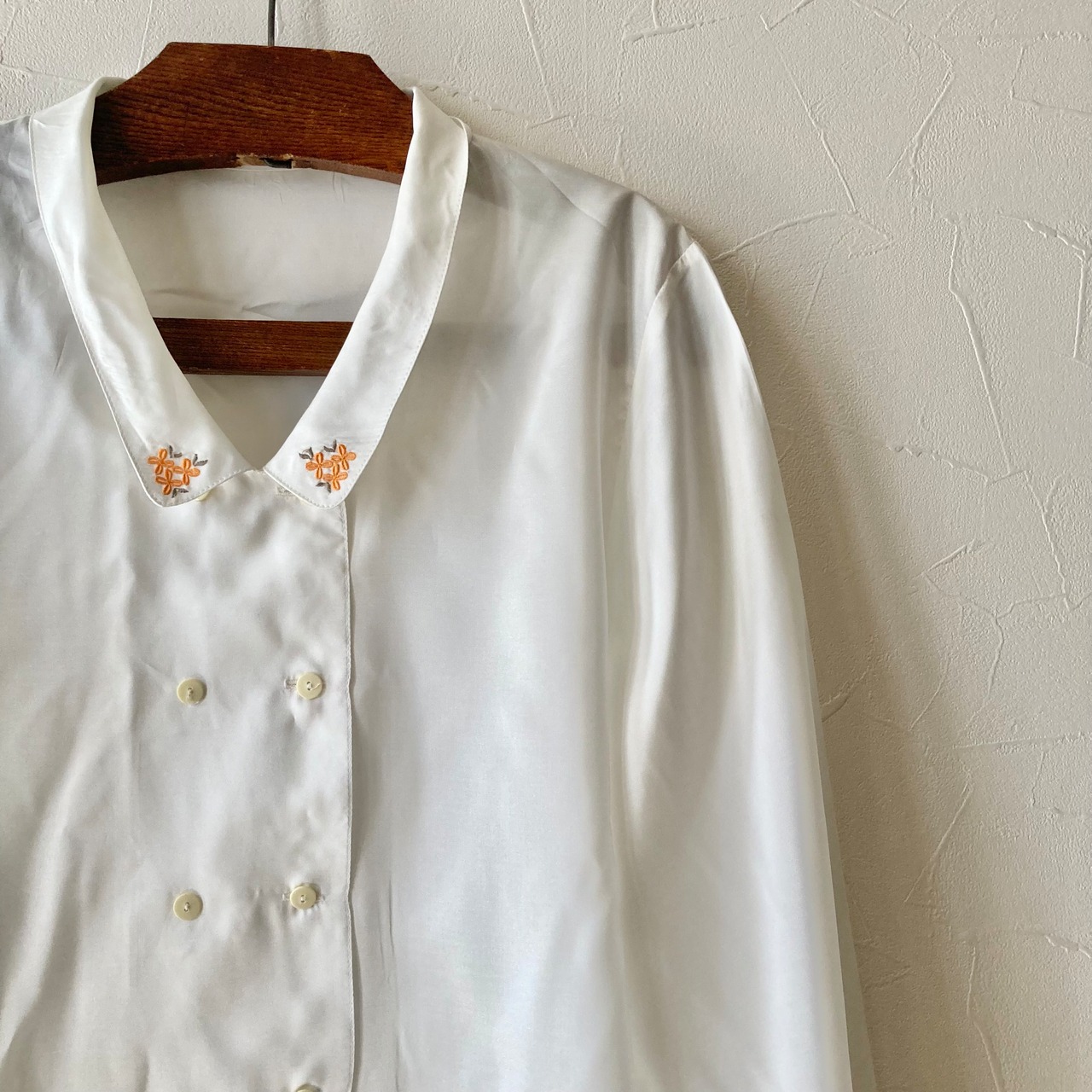 花刺繍ダブルボタンブラウス 古着 used vintage レトロ